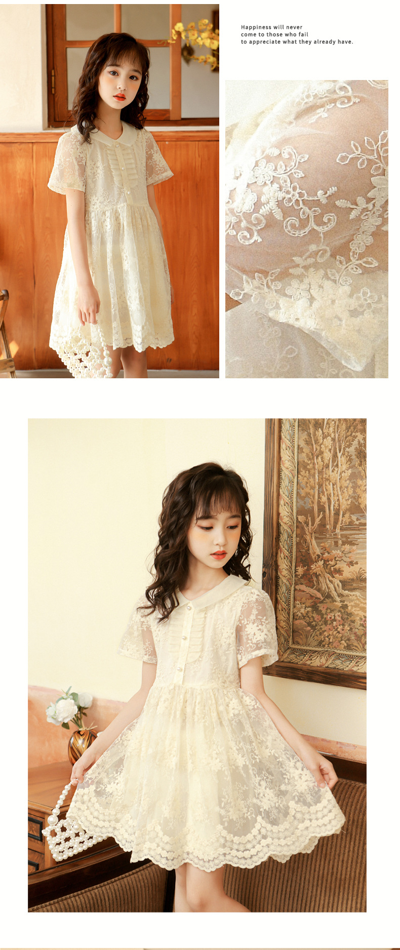 Suitable for height: 130cm lace dress, 140cm mesh fairy dress, 150cm lace hollow cotton edge, 160cm gentle dress, 170cm lace
