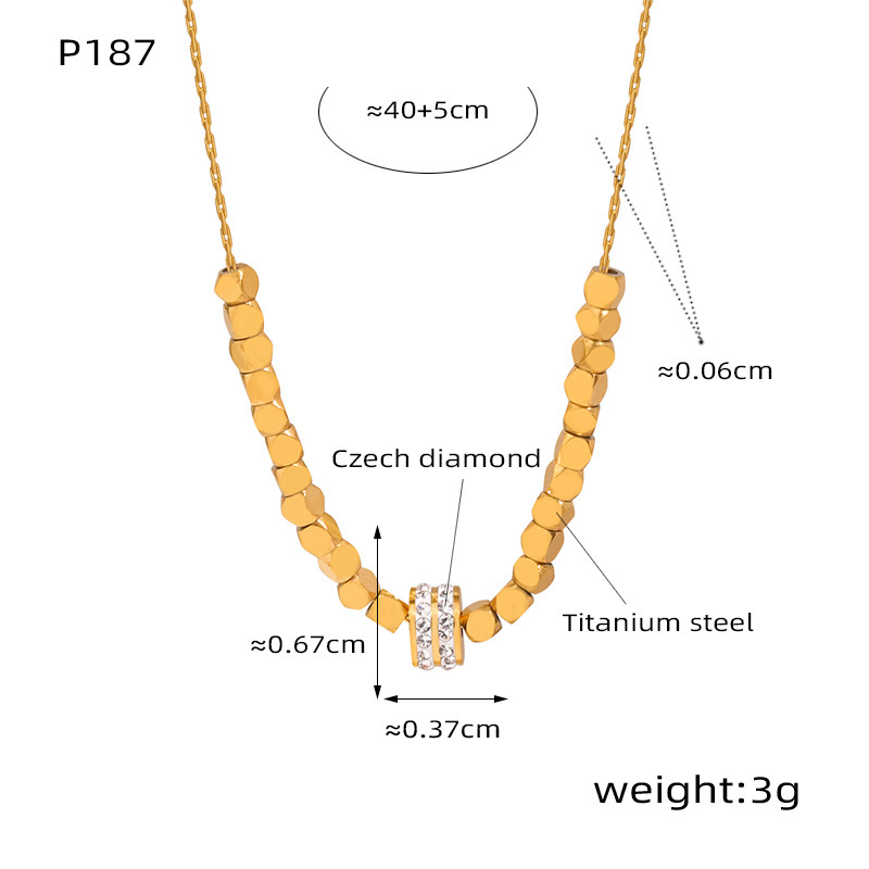 Product information:Color: P187-gold necklaceApplicable people: womenPendant material: titanium steelChain style: O-shaped chainMaterial: titanium steelPopular elements: square, square sugar