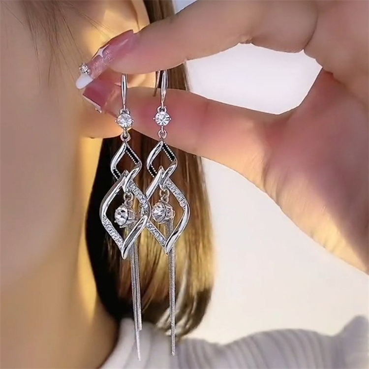 Double Diamond Tassel Temperament Earrings