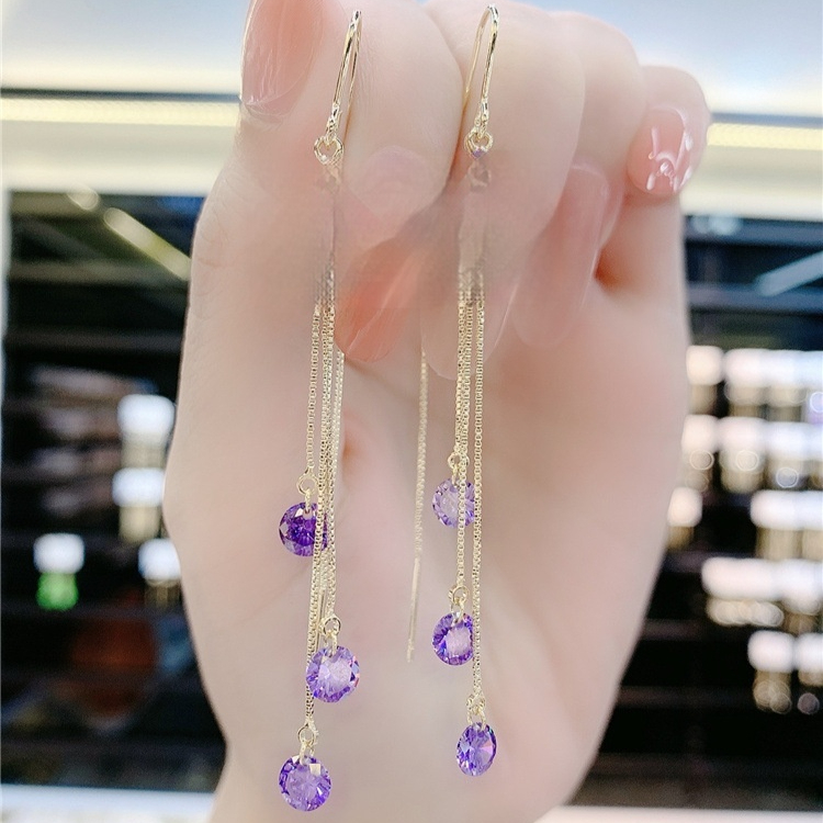 Product information:Color: purple zircon EAR thread Material: Copper Applicable population: Female Shape: Flower Popular elements: Flowers Style: Korean style Weight: 10g