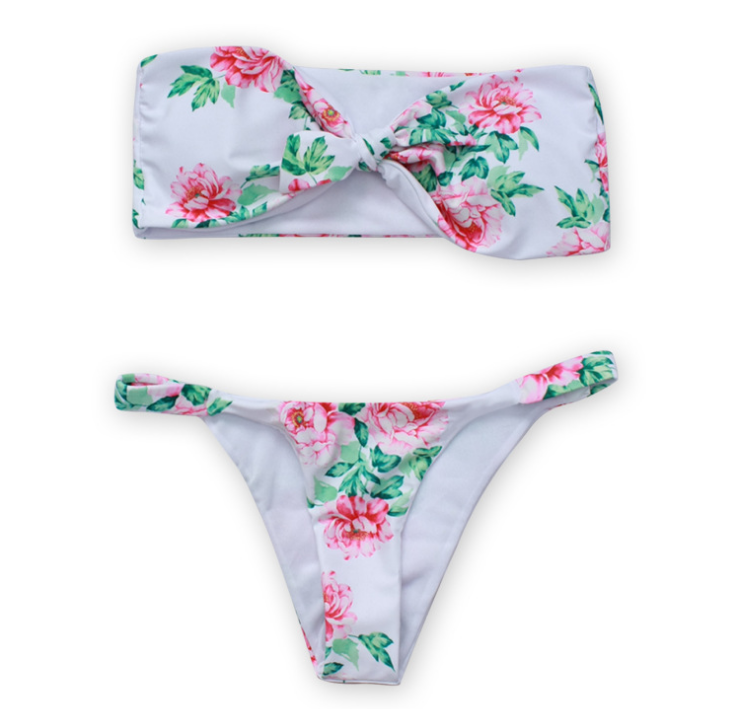 Bandeau Bikini Floral Swimwear Print Swimsuit Brazilian Biquini Sexy Thong Bikinis Set Bow Bathing Suit Maillot De Bain S-L