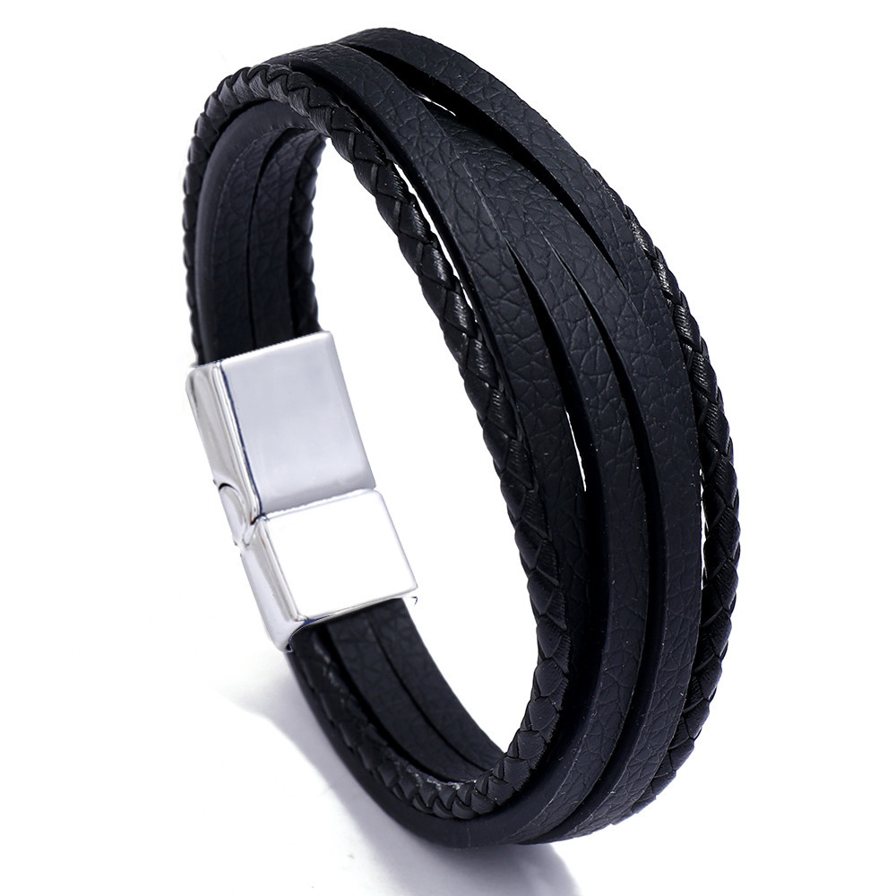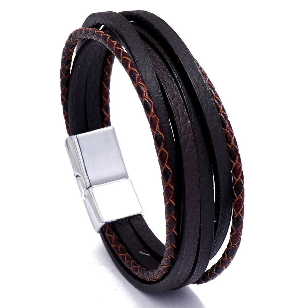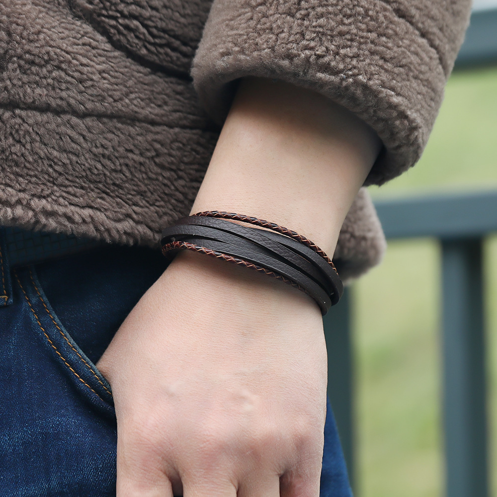 Product Information: Material: leatherPopular elements: retroType: BraceletColour: BlackStyle: VintageInlaid material: not inlaidColor: black, brown Style: black buckle white buckle Packing:Bracelet *1