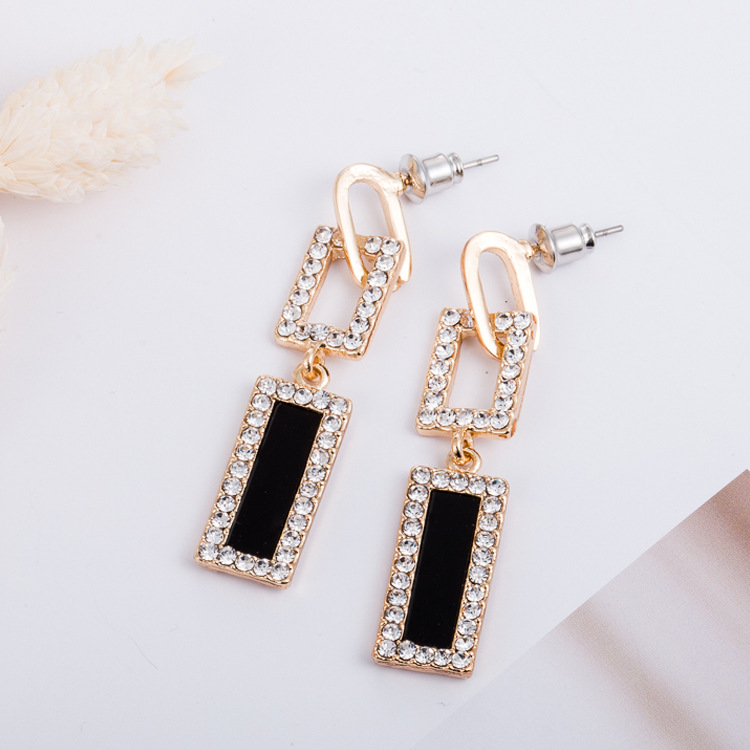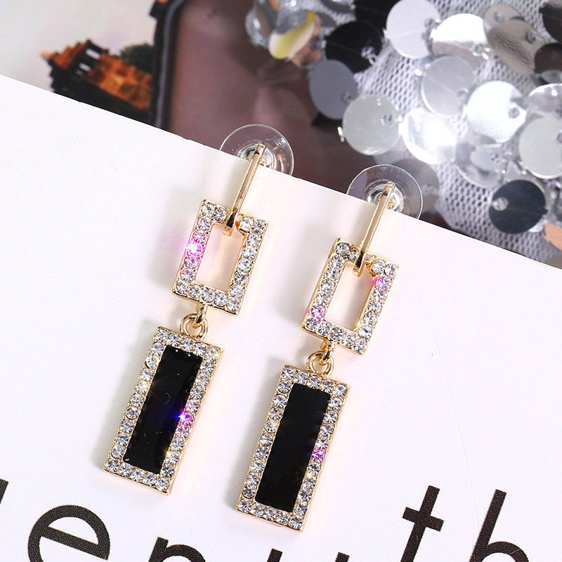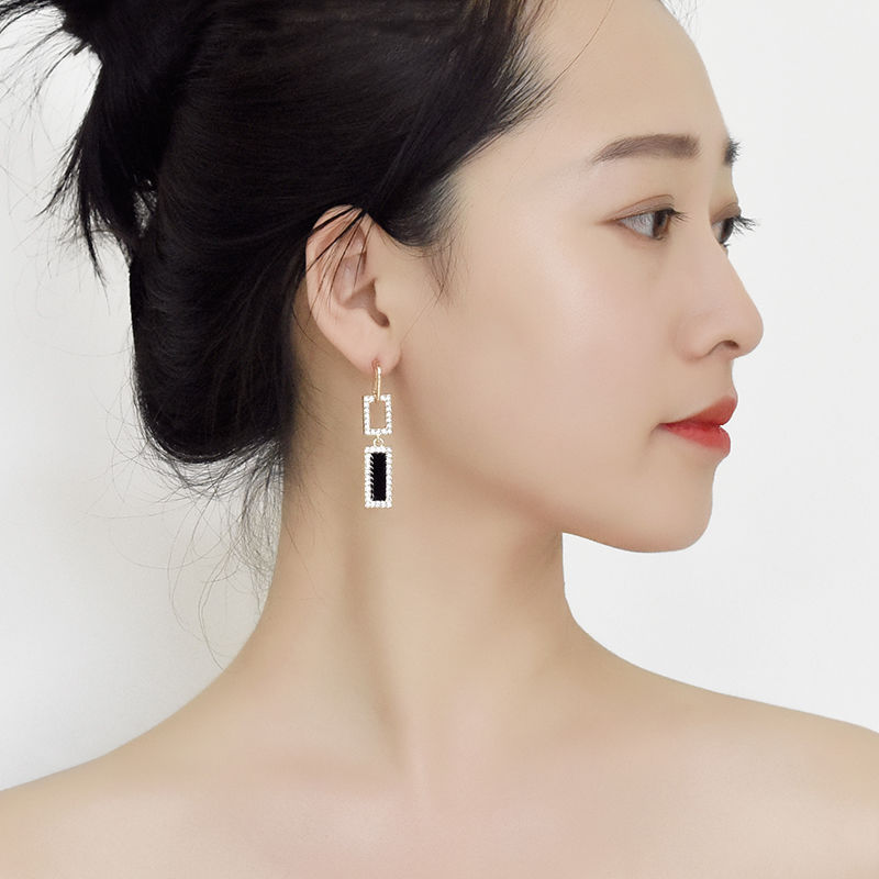 Style: Korean style/Korean styleMaterial: AlloyTreatment process: electroplatingType: EarringsStyle: Women'sModeling: GeometryPackaging: Individually packedColor: Rectangle: Black