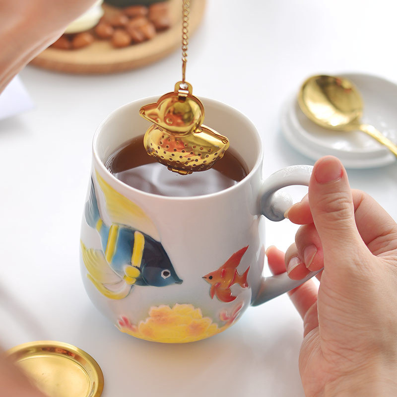Product Details:Material: bone chinaProduct Category: MugFunction: high temperature resistanceStructure: single layerPattern: CartoonShape: roundColor: red fish, yellow fishCapacity: 350mlPackage Contents: