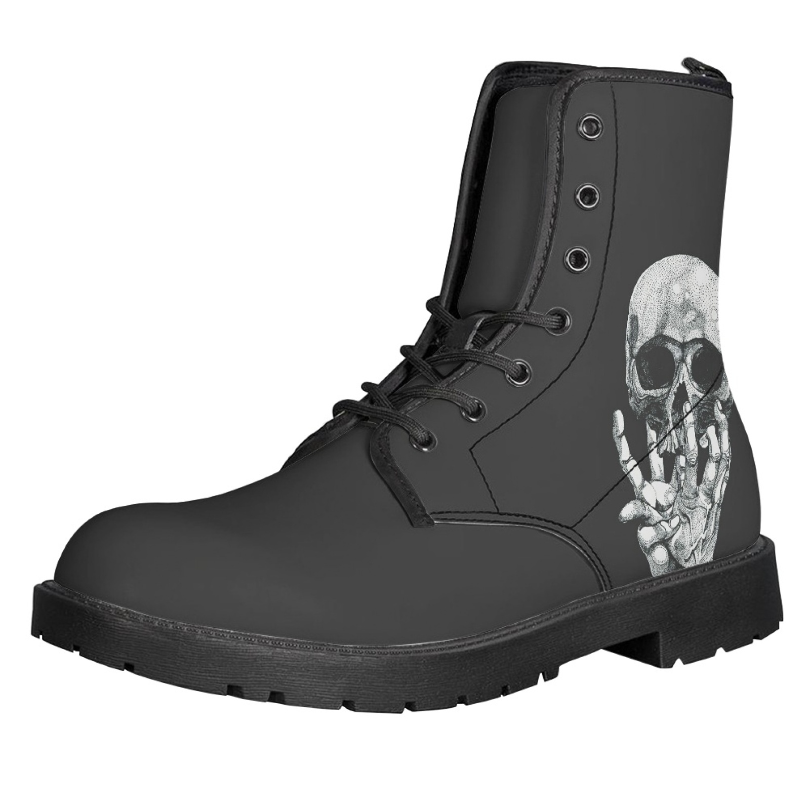 Printed Women's Leather Flat Bottom Low Heel British Martin Boots
