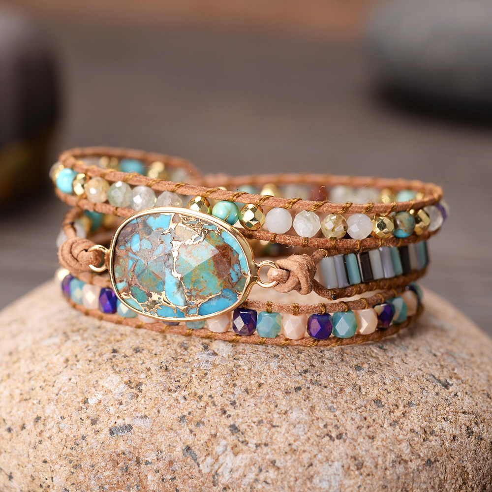 Product information:Style: Europe and AmericaMaterial: CrystalType: BraceletStyle: Women'sModeling: GeometryPackaging: Individually packedNatural turquoise bracelet hand-woven beaded stone crystal bracelet
