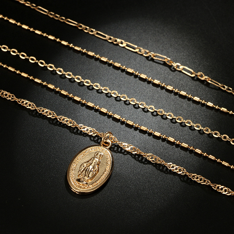 Elliptical Pendant Wild Clavicle Chain Five-Layer Women's Necklace