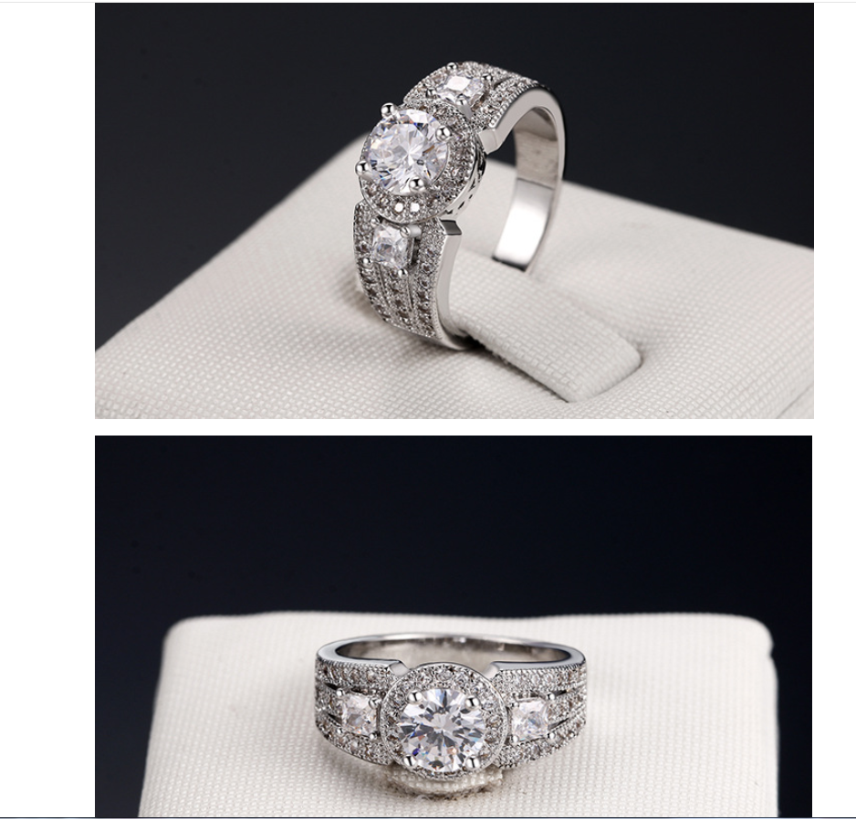 Fashion trend wedding ring AAA zircon heart and eight arrow plated women's white gold ring