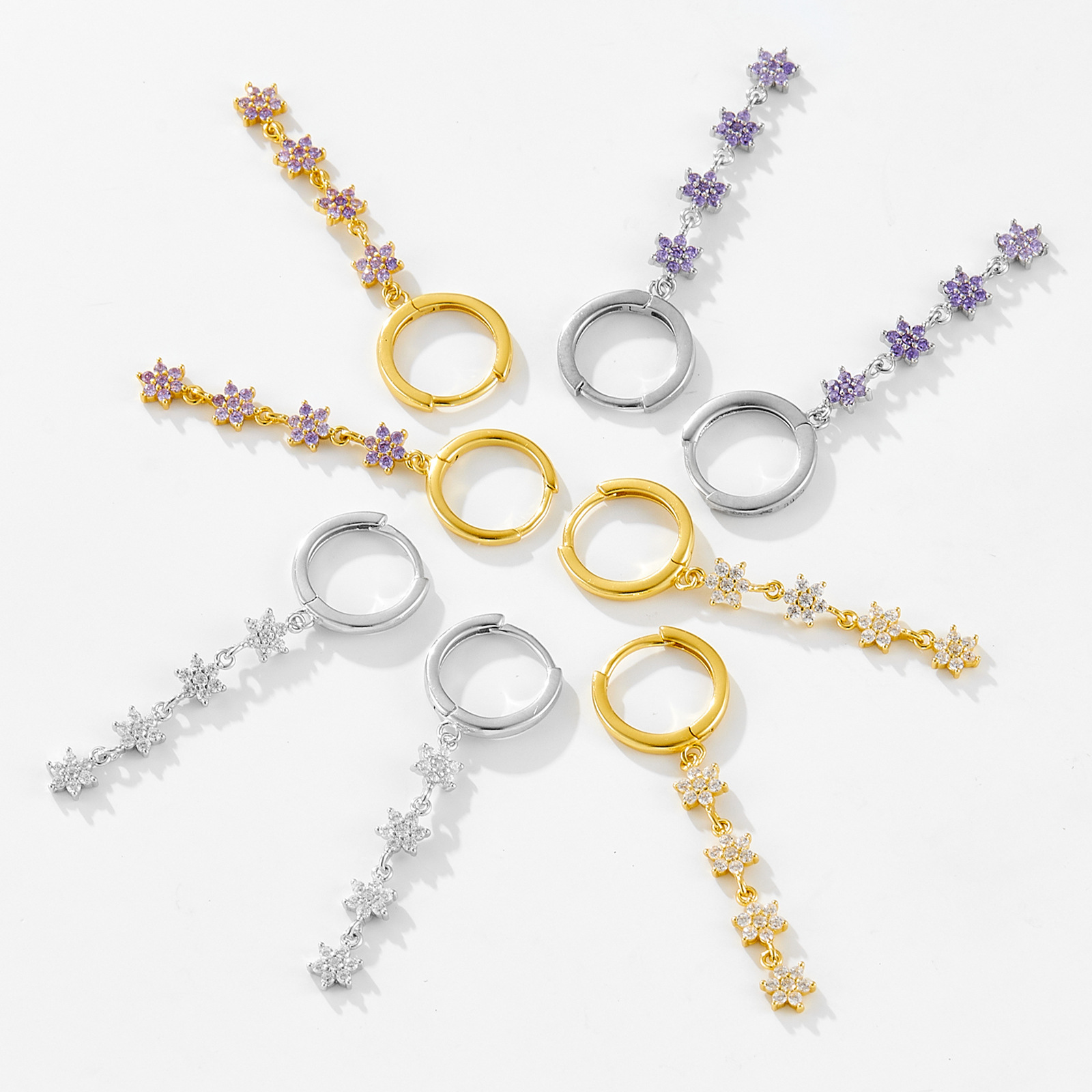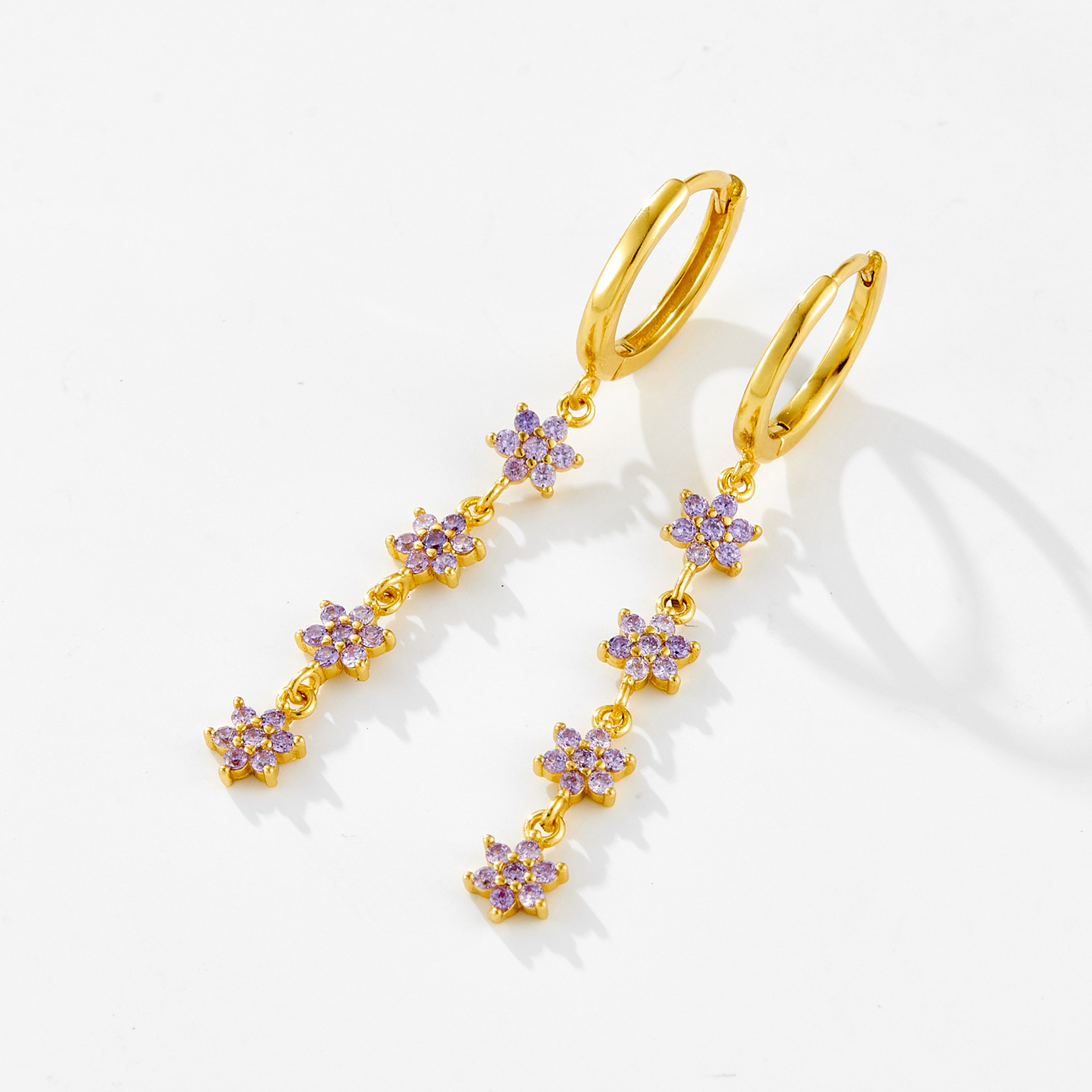 Product information:Color: Platinum (white stone), platinum (purple stone),18K gold (white stone),18K gold (purple stone) Applicable population: Female Material: Silver Shape: Flower