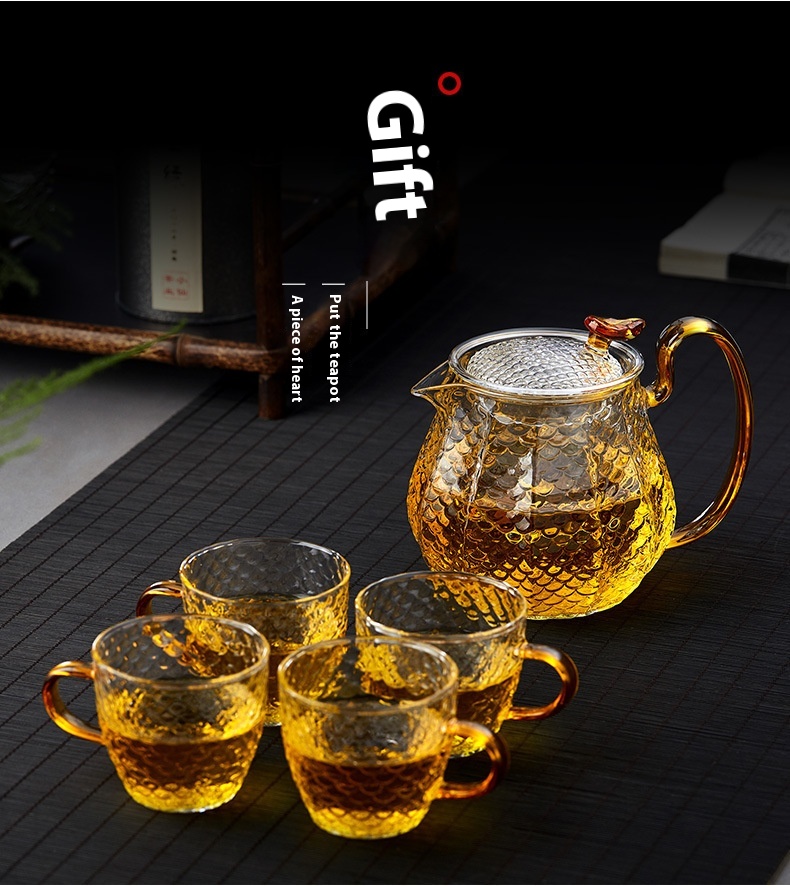 Product information:Color: 600ml scale grain single teapot, 600ml pot plus 4 cups gift box, single Cup Surface Technology: heat-resistant glassStyle type: simple style Material: borosilicate