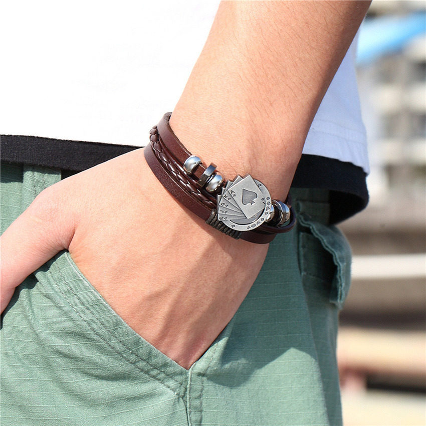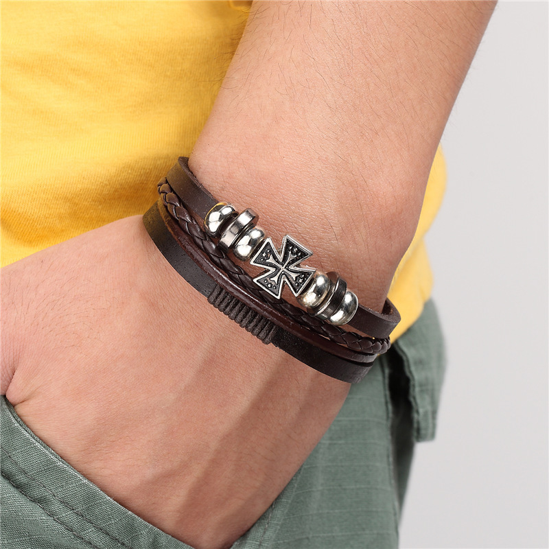 Name: Leather BraceletColor: black, brownMaterial: genuine leather, two layers of cow leather,