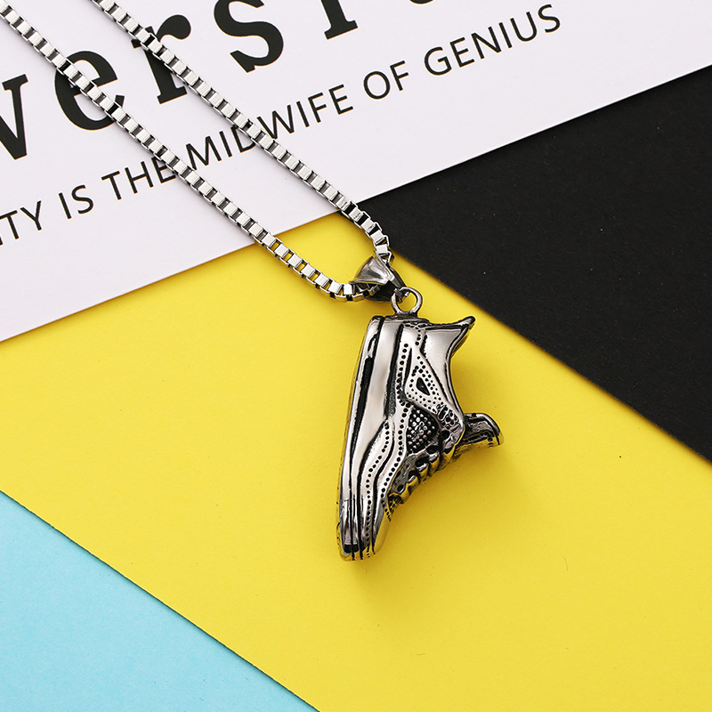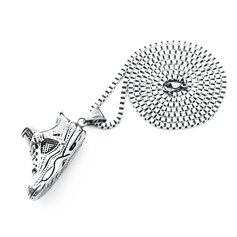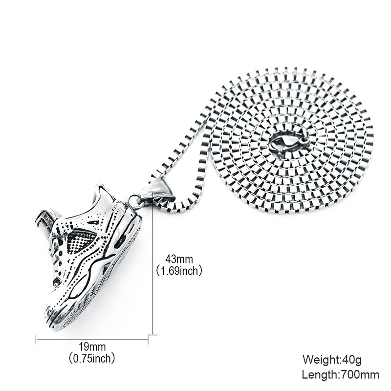 Product informationStyle: European and AmericanMaterial: Titanium steelStyle: Couple styleStyling: Basketball shoesPackaging: Individually packedColor: Titanium Steel Pendant [No Chain], Necklace [Pendant + 70CM Stainless Steel Chain]