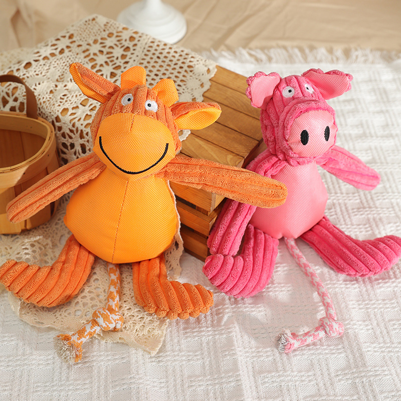 New Pet Dog Plush Sounding Cartoon Cow Cartoon Pig Animal, Bite-resistant Pet Toys