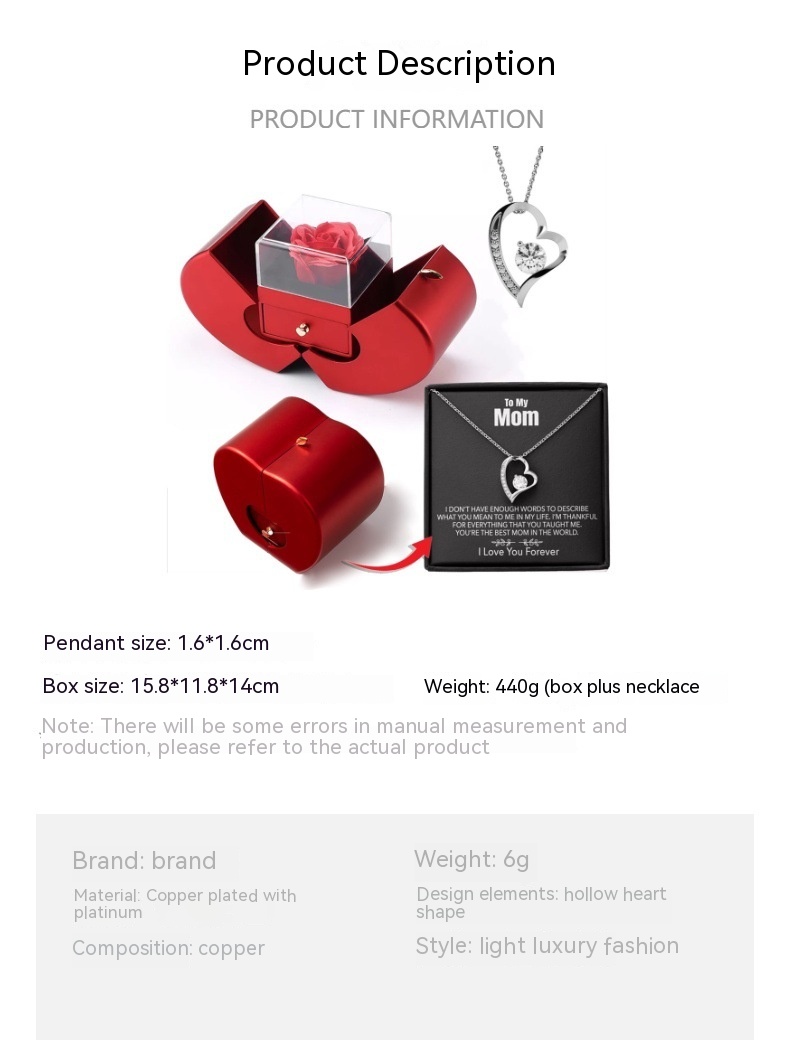 Color: necklace (silver) card A Apple box, necklace (gold) card A Apple box, necklace (silver) Card B apple box, necklace (gold) Card B apple box