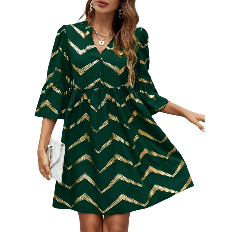 Product information:Pattern: stripes/Plaid Color: dark green Waist type: high waist Size: S,M,L,XL Sleeve type: ruffled sleeves Composition: Polyester100%