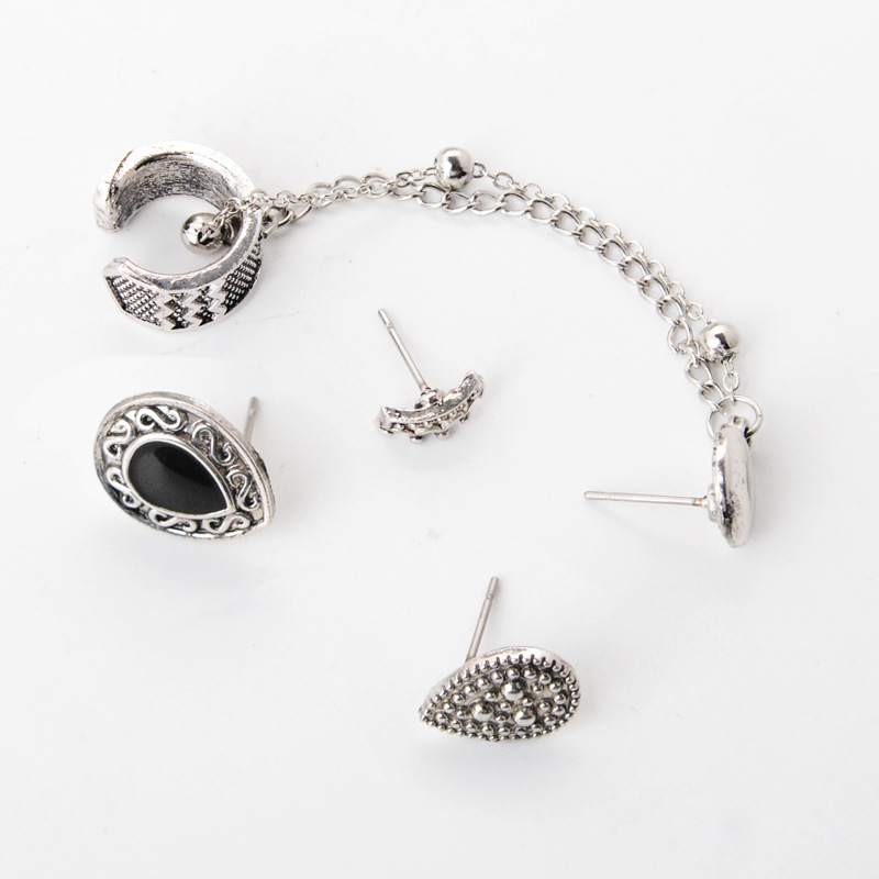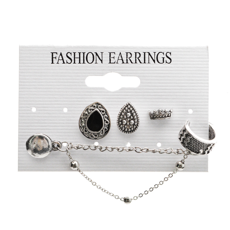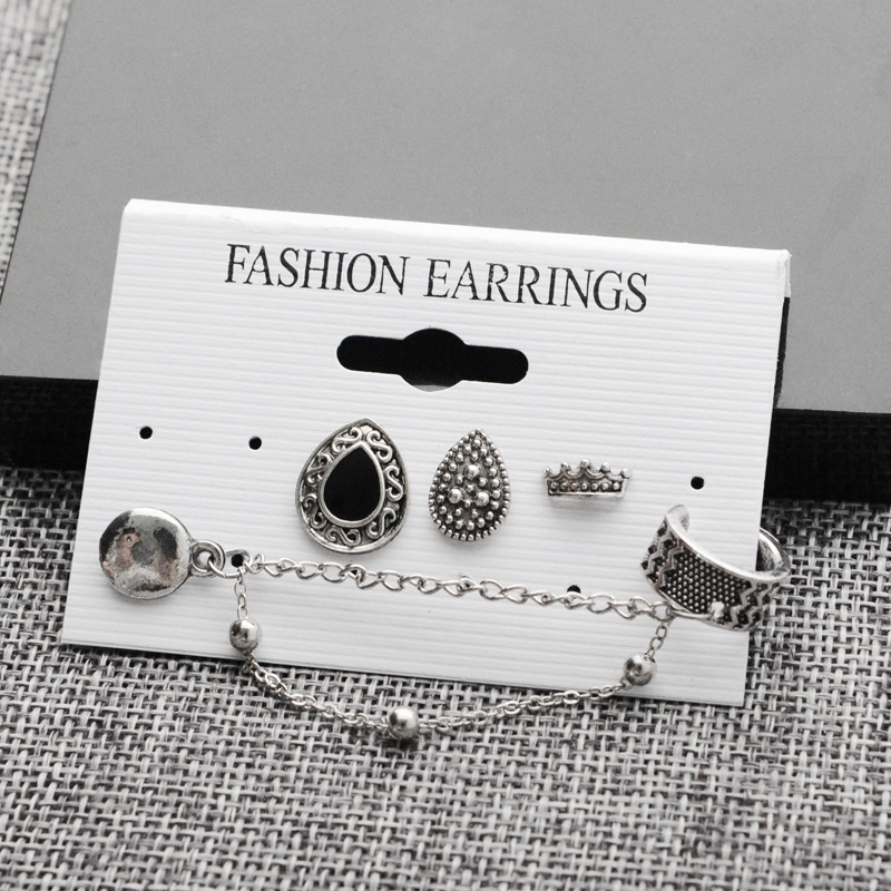 Bohemian retro style crown drop chain 4 piece earrings