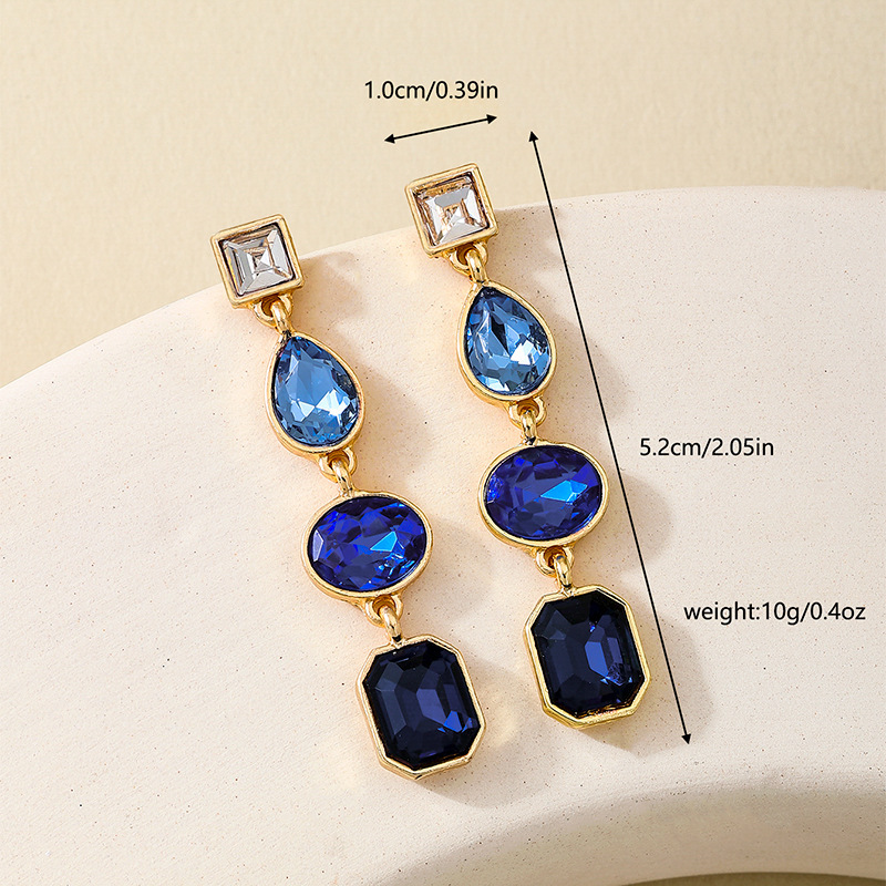 Product information:Color: Royal Blue, Rose Red, green water droplets, Rose red water droplets Applicable population: Female Material: Alloy Shape: Geometry Style: Simple