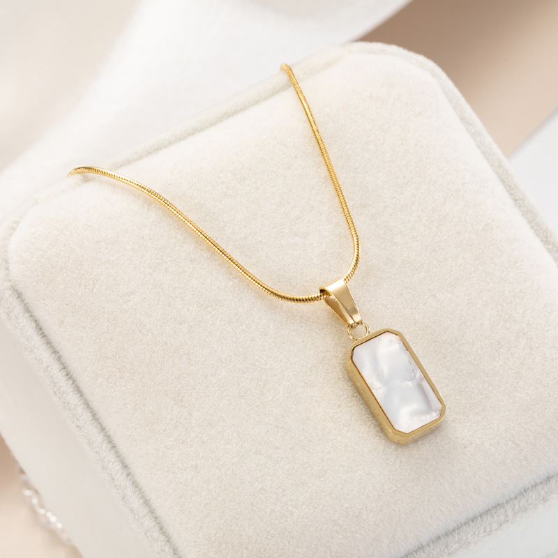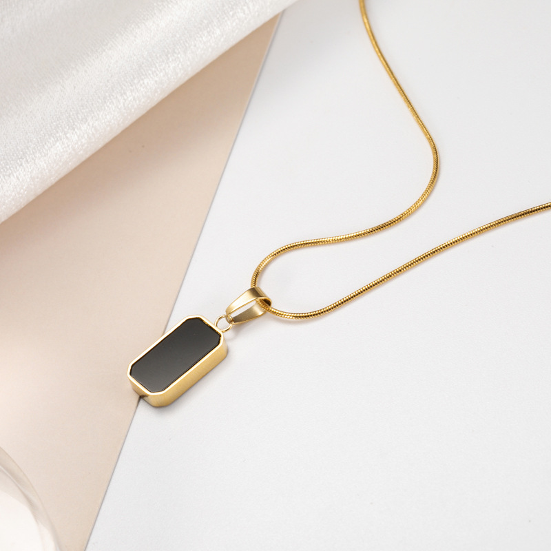 Style: SimpleMaterial: titanium steelTreatment process: electroplatingChain style: Snake-bone chainPendant material: titanium steel