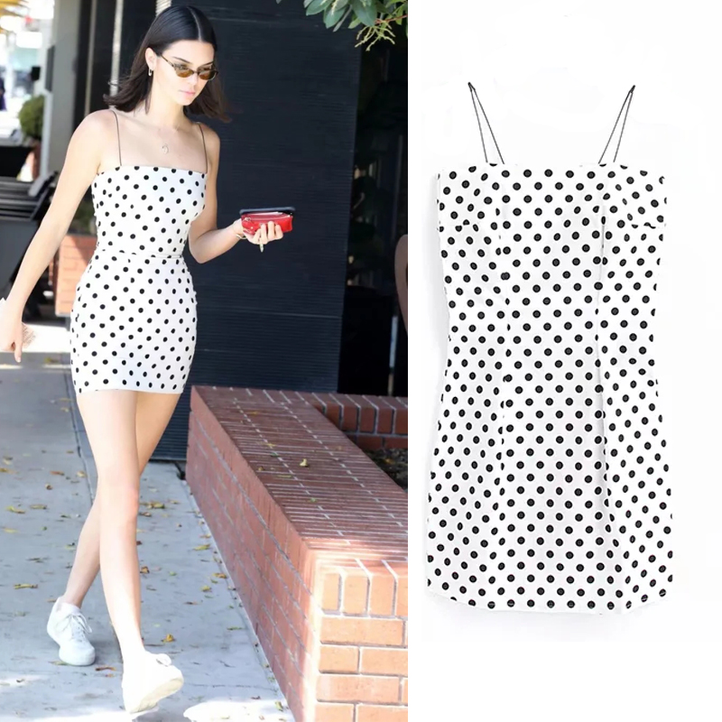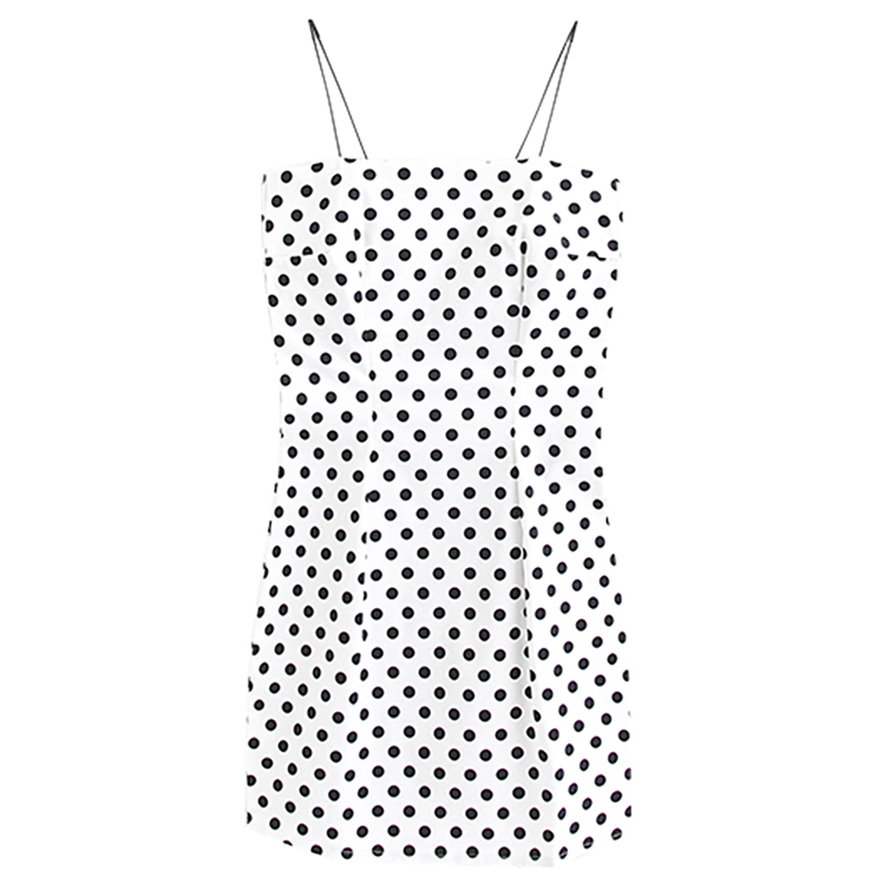 Pattern: DotWaist type: high waistClothing placket: hedgingColor classification: black whiteCombination form: single pieceSleeve: SleevelessSkirt length: short skirtStyle: sling