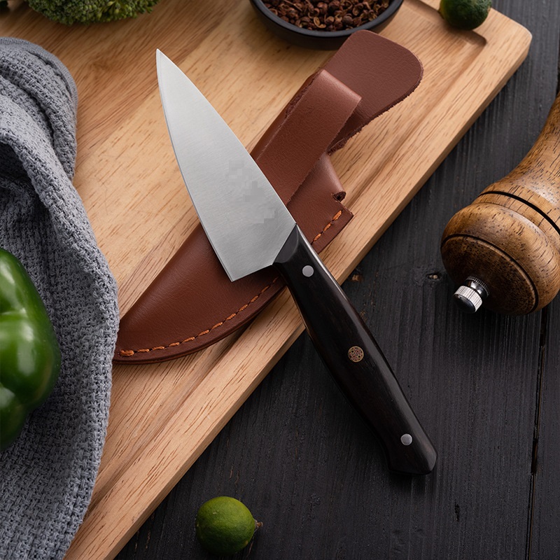Material: Swedish Sandvik 14c28n steel ebony handle copper flower nailThickness: 2.5MMSize: Total length 20 × Blade length 10CMColor: Primary