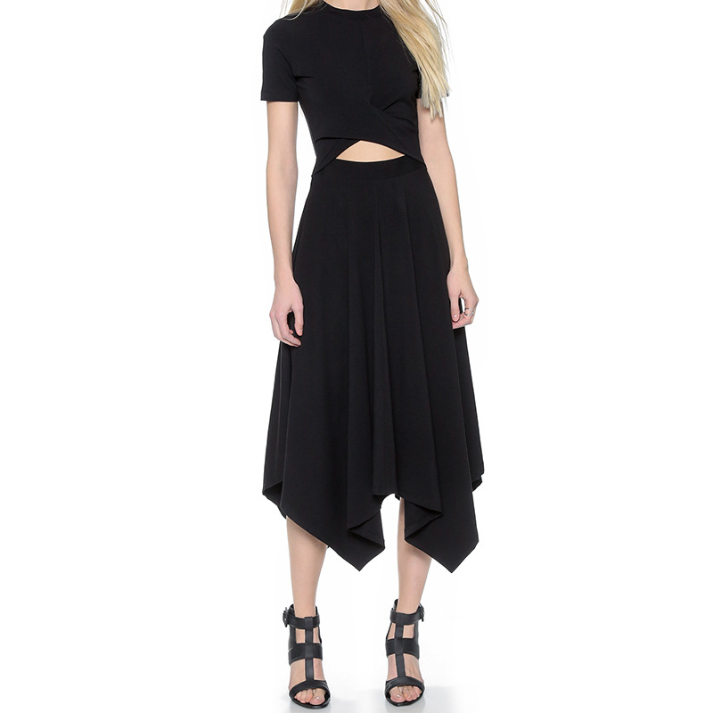 Fashion Trends Waist Cutout Cross Pleated Paneled Short Sleeve Dress