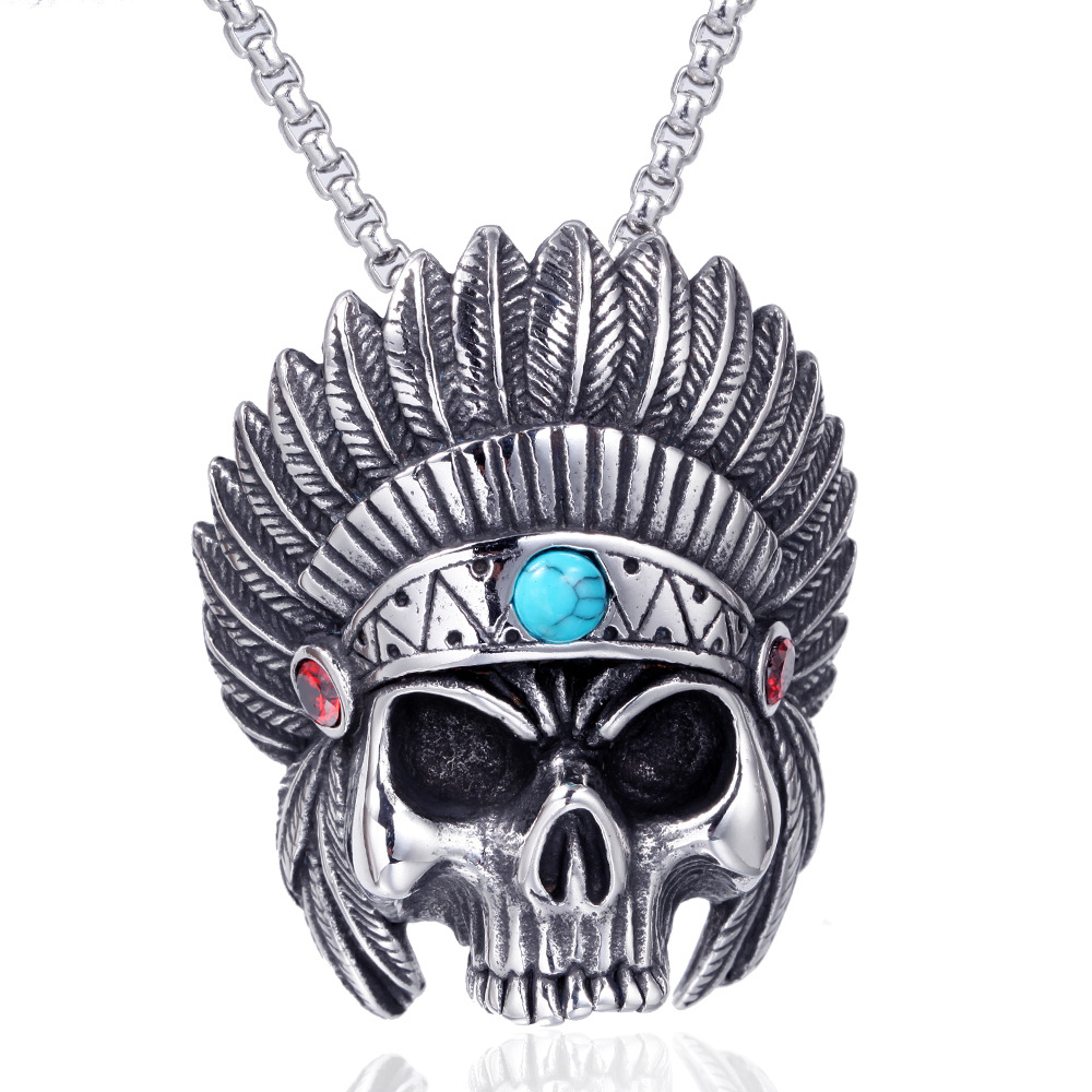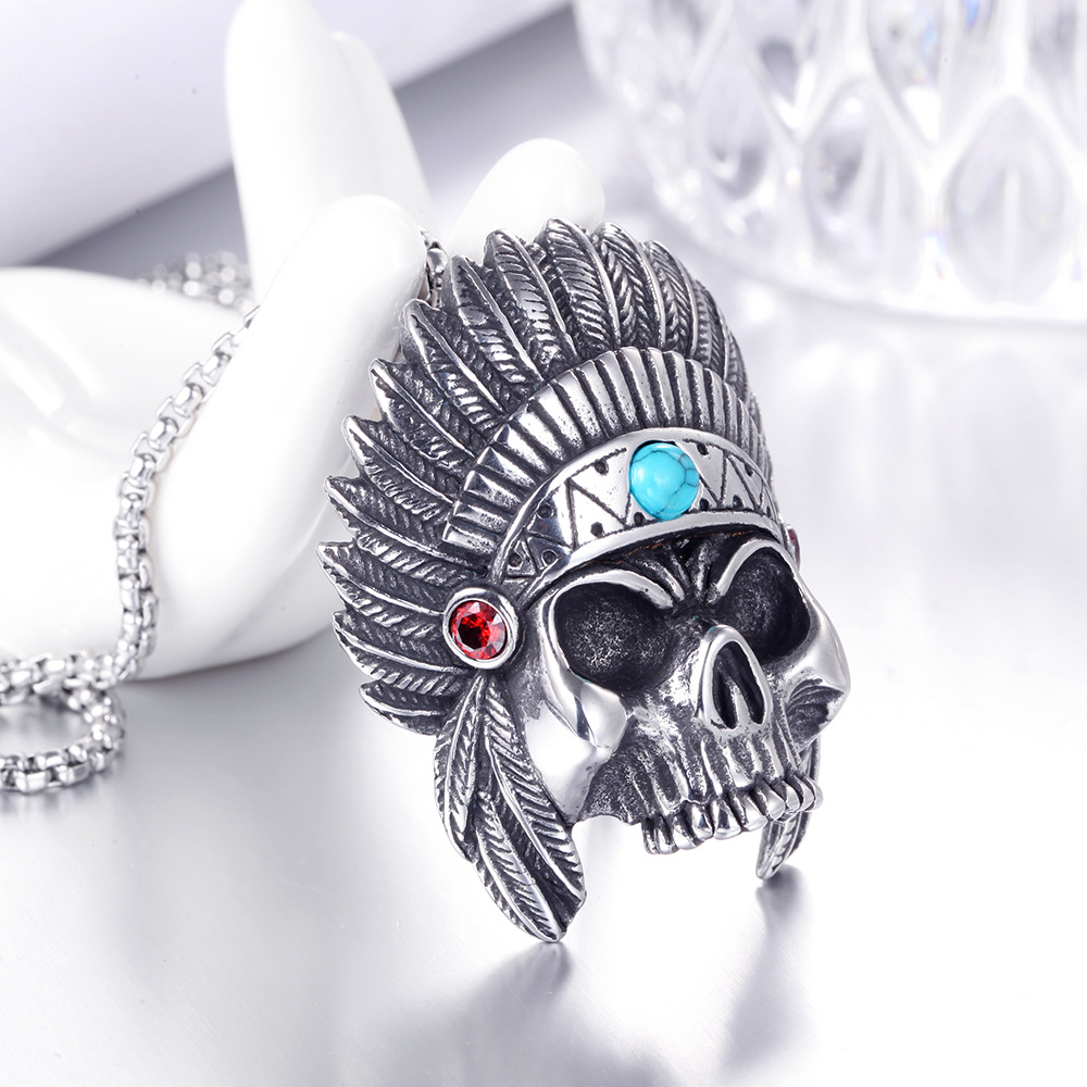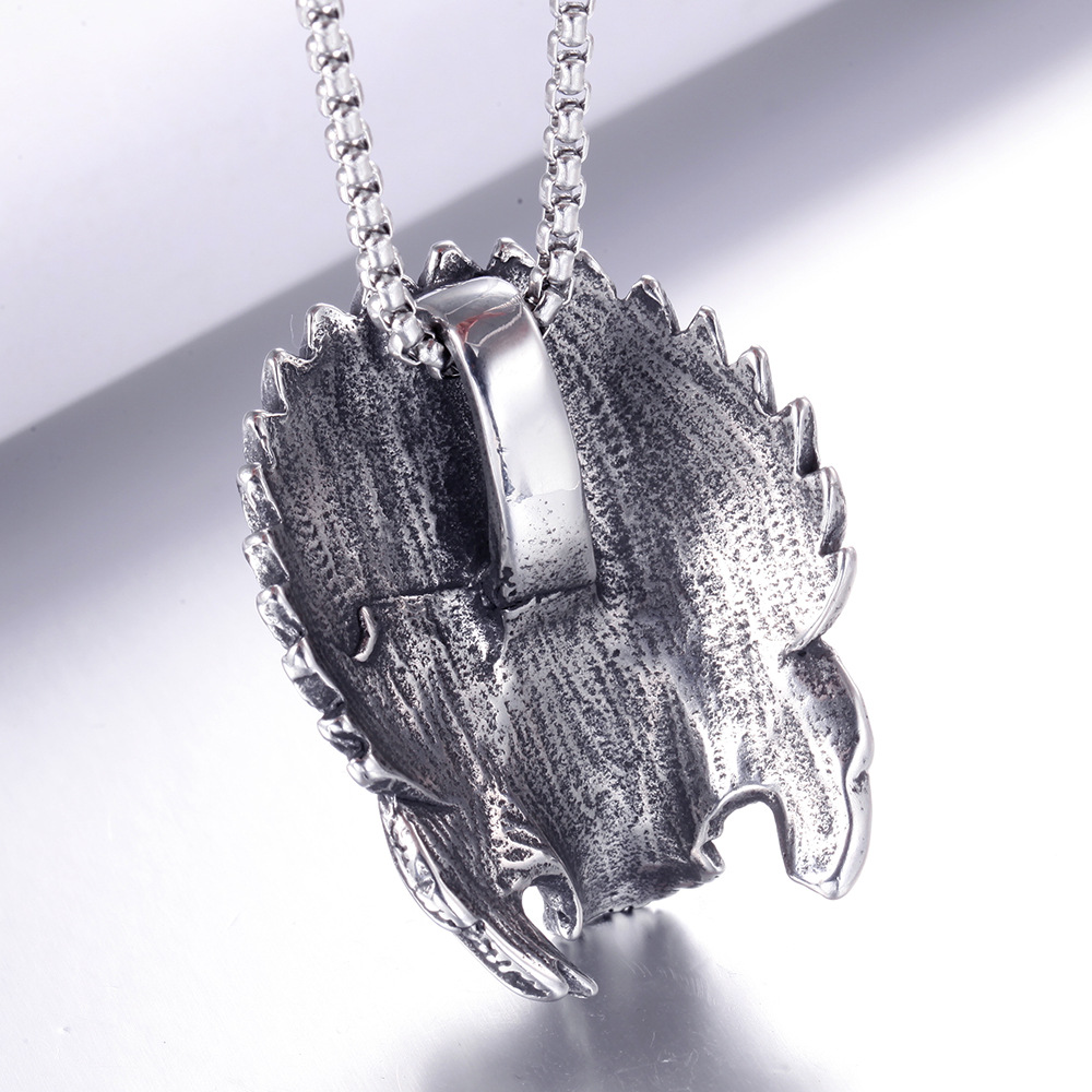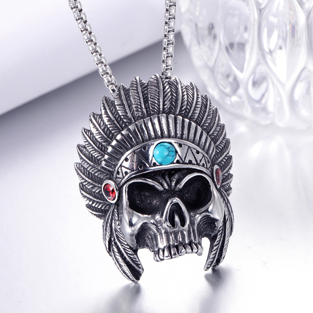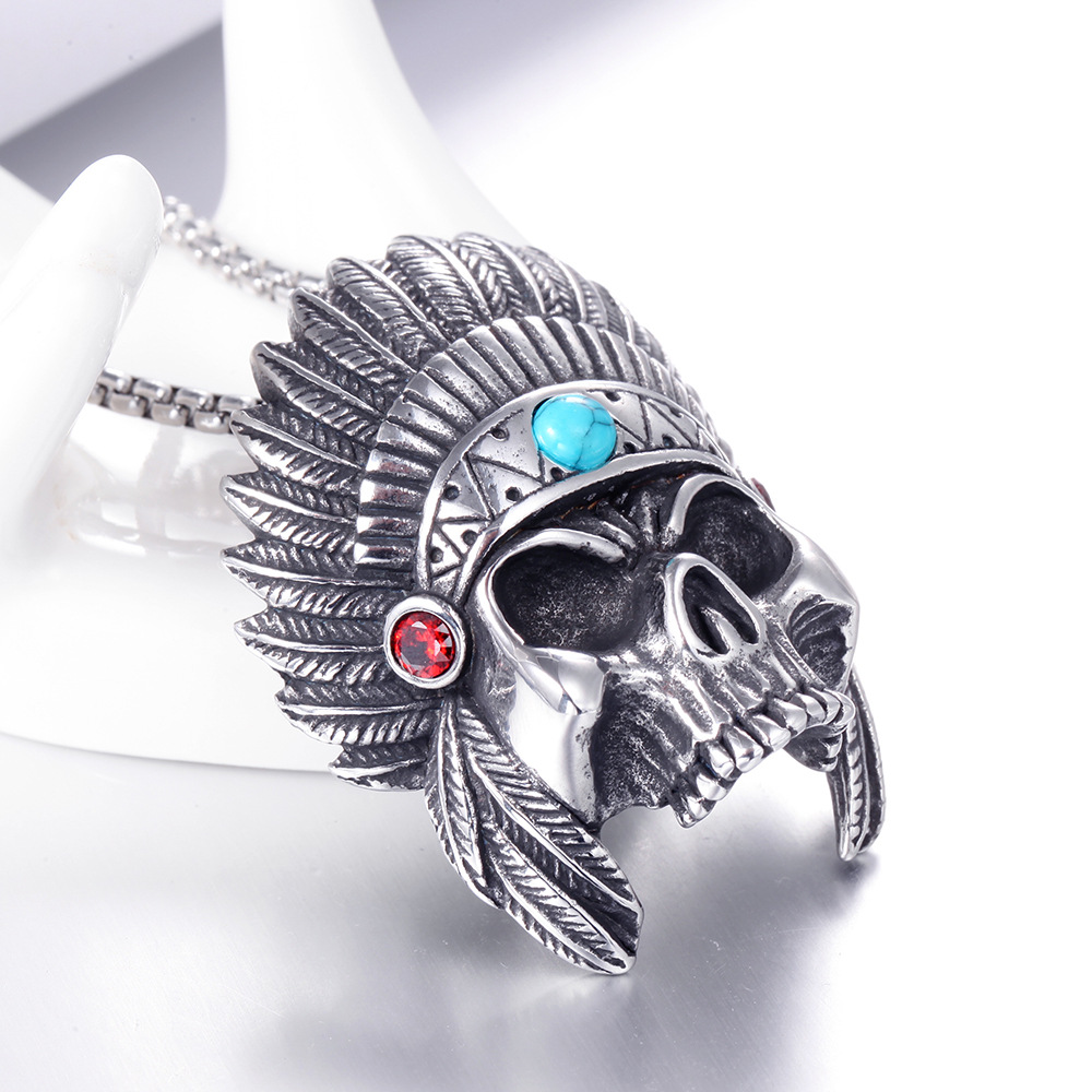 Stainless Steel Skull Necklace Vintage Takahashi Feather Titanium Steel Pendant