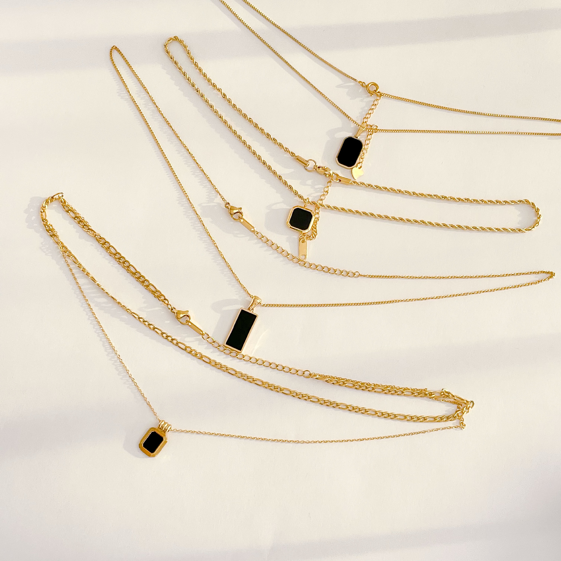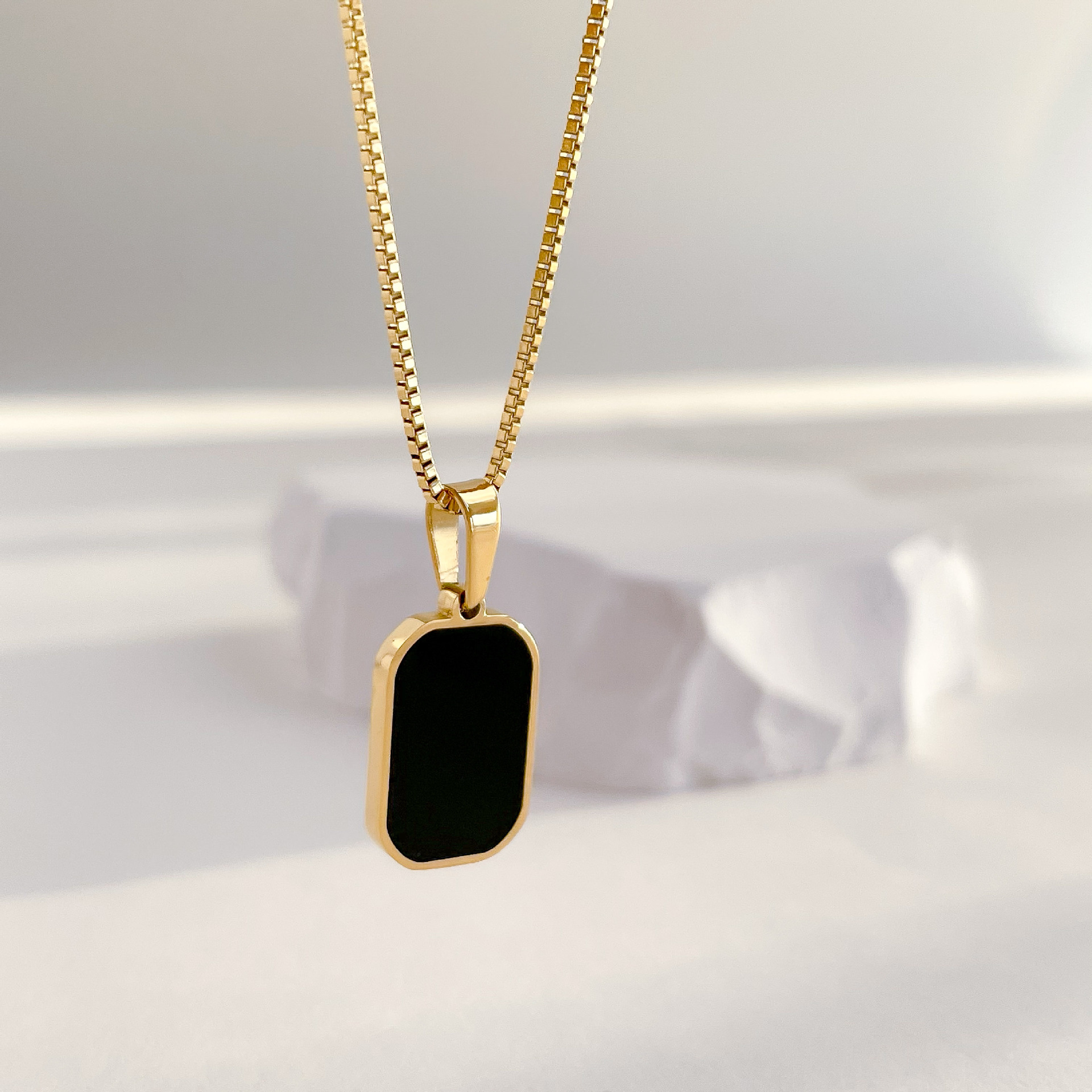 Style: simpleMaterial: titanium steelType: necklaceStyle: Women'sShape: geometricColor: Double-layer black shell, rectangular terms, square models, square oval modelsPopular elements: geometry