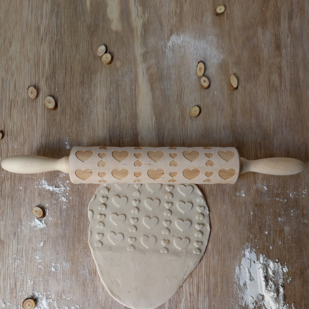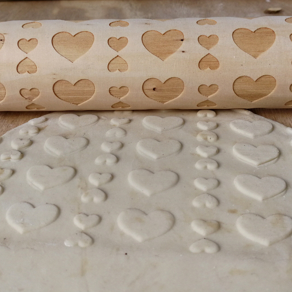 Wooden Rolling Pin Laser Engraving Love Pattern Rolling Pin