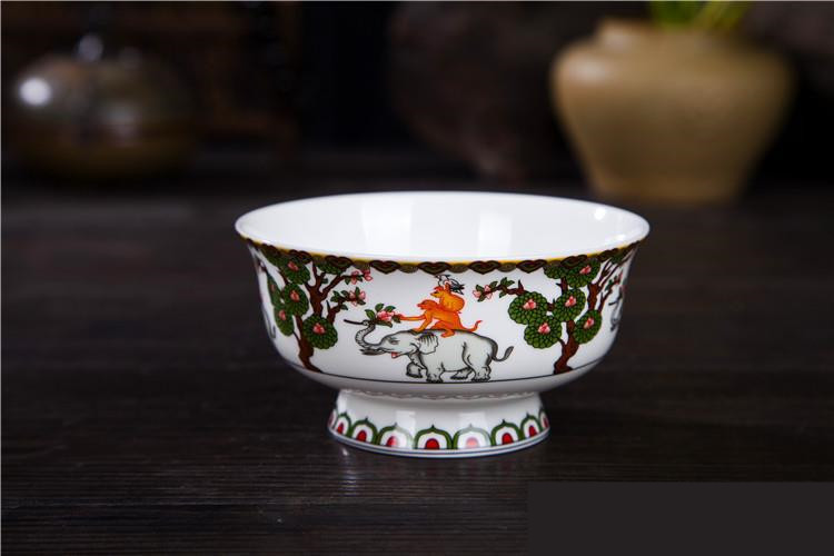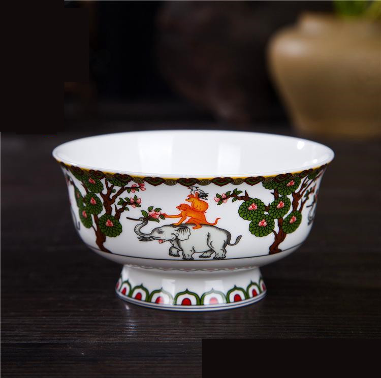 Product Category: BowlMaterial: New bone chinaPattern: Plants and flowersStyle: ChineseColor: 4.5 inch four auspicious treasures, 5 inch four auspicious treasures