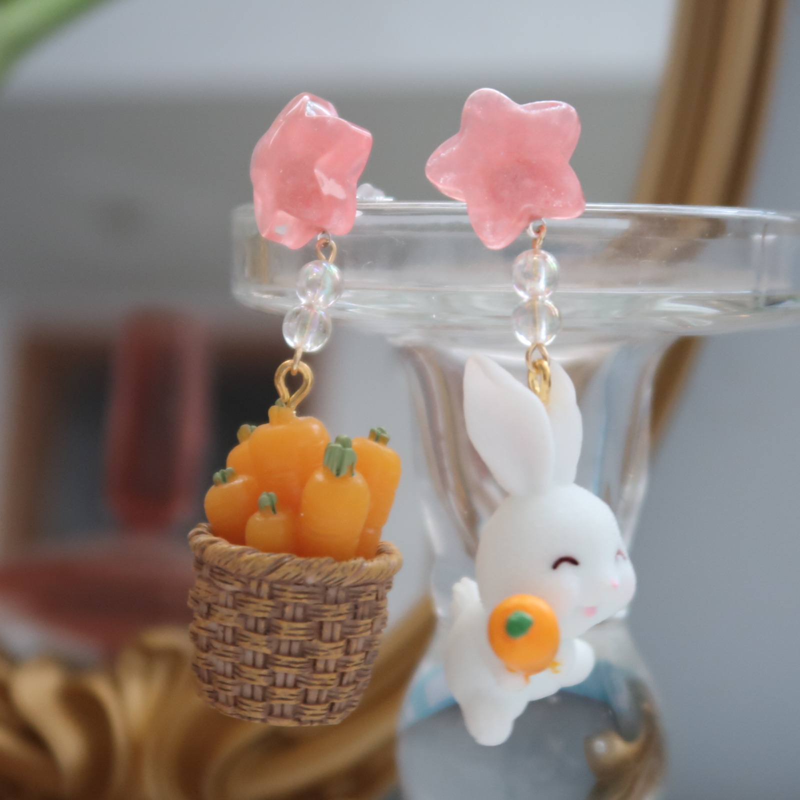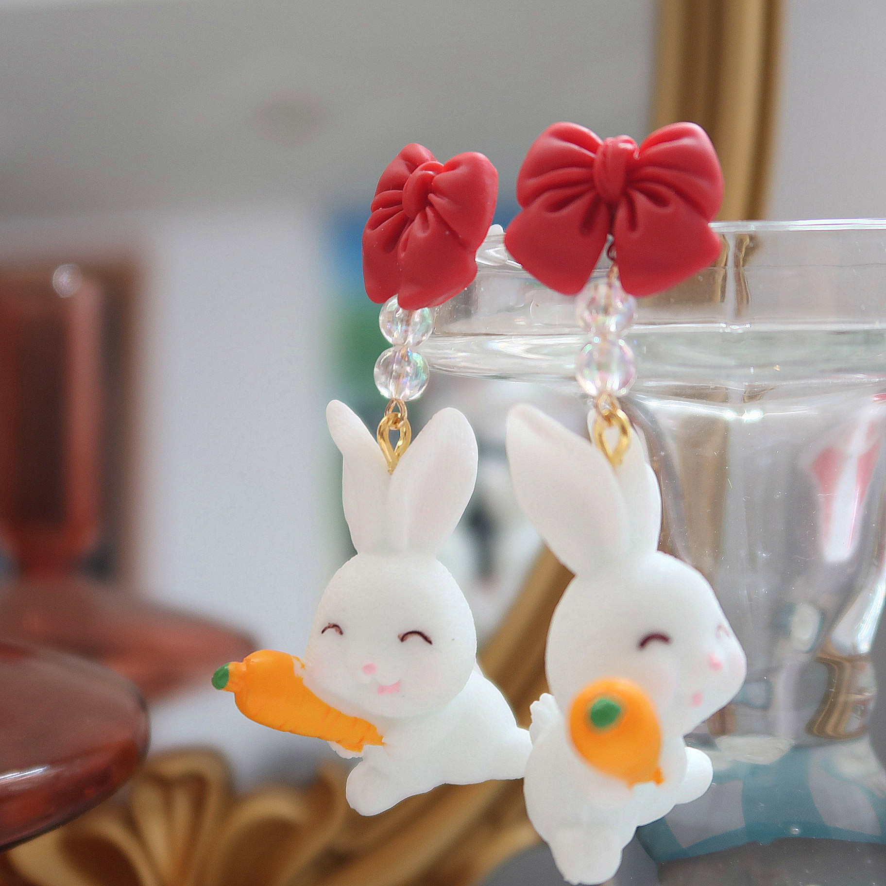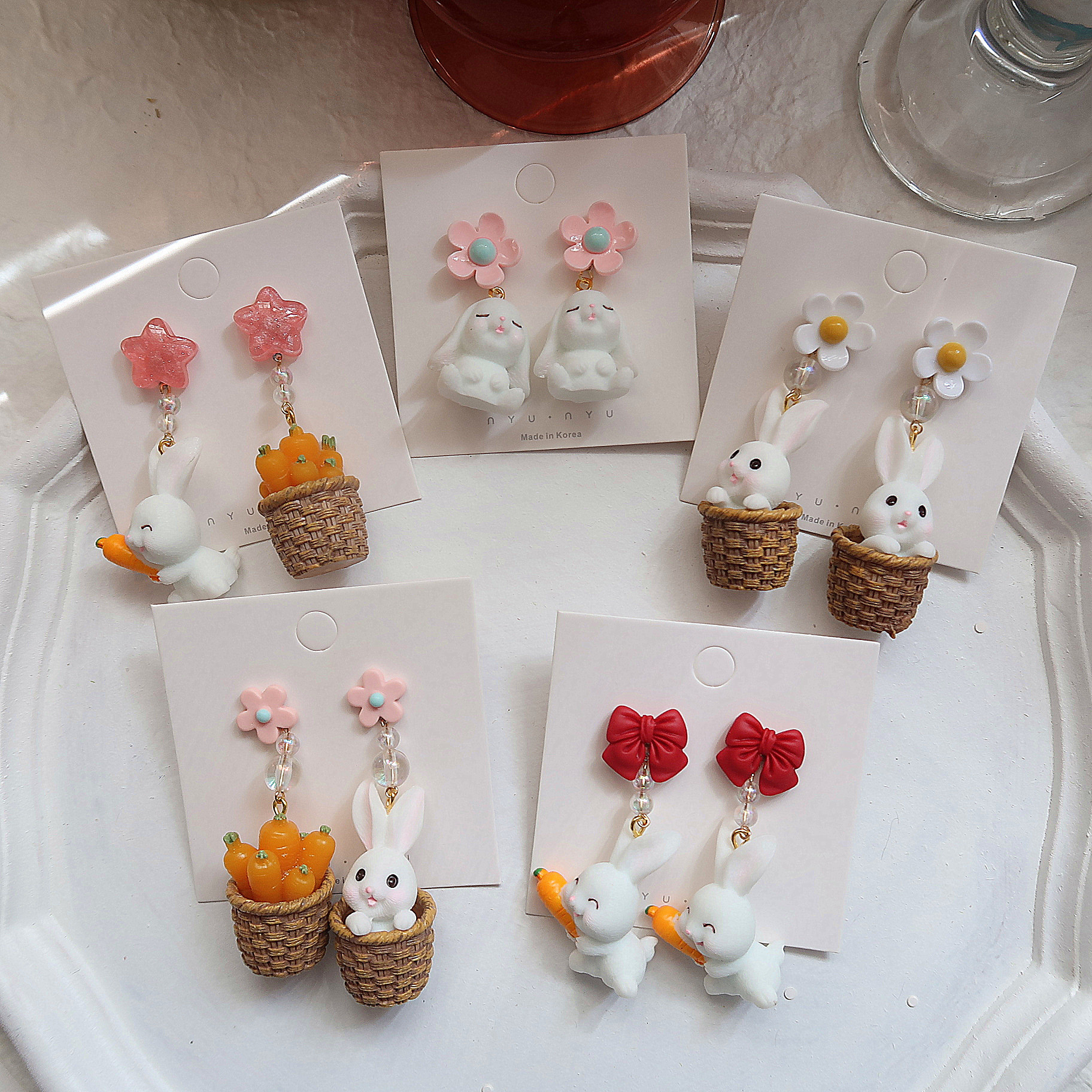 Color: pink flower silver needle, pink flower ear clip, red bow silver needle, red bow ear clip, white flower silver needle, white flower ear clip, pink five-pointed star silver needle, pink five-pointed star ear clip, pink sitting rabbit silver needle , pink sitting rabbit ear clip