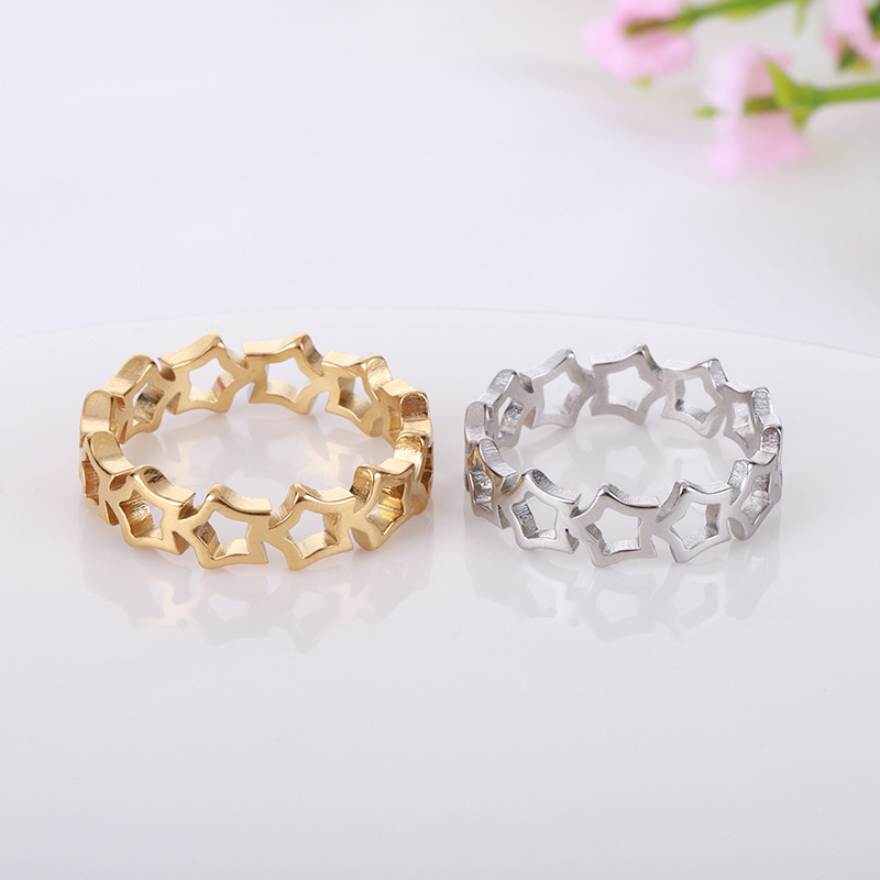 Product information:Type: RingTreatment Process: PolishingColor: silver, gold, rose goldSize: No. 5, No. 6, No. 7, No. 8, No. 9, No. 10Style: Women'sMaterial: Stainless steelShape: StarPopular elements: Love/heartStyle: Korean style