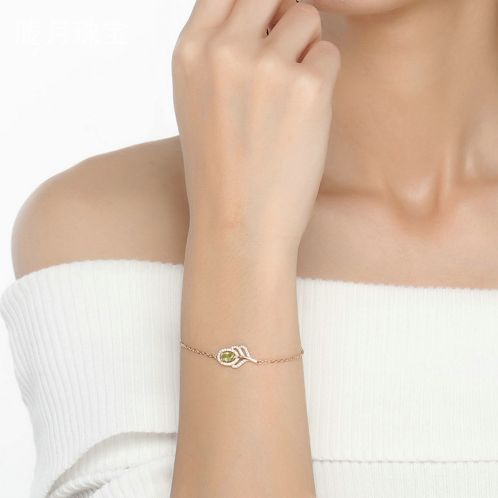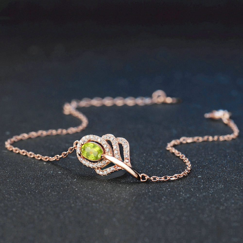 Natural olivine peacock feather Bracelet