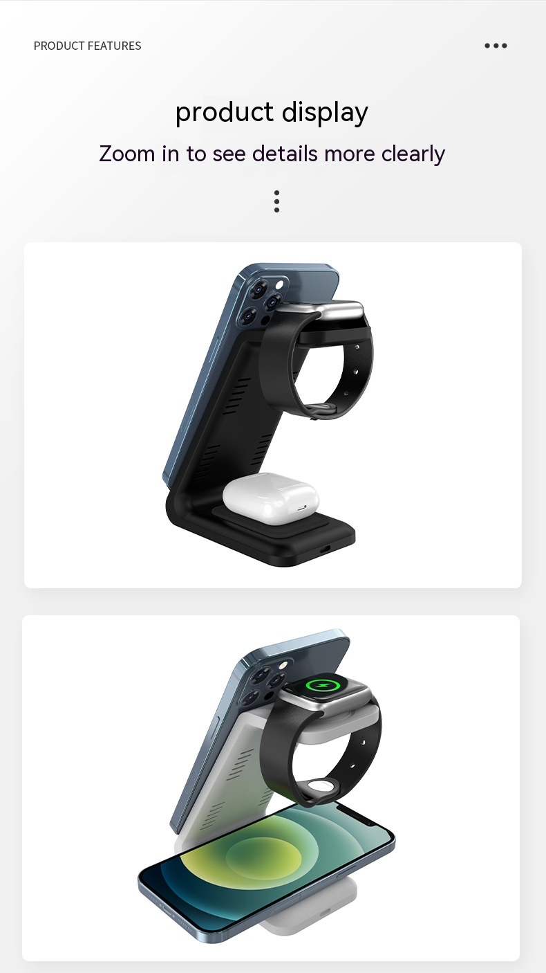 Product information:Input: 5V/2A 9V/2AColor: Black/WhiteSize: 330 * 70 * 130mmTransmission distance: 2-6mmOutput: 15/10/7.5/5WInterface: TYPE-CEfficiency: ≥ 75%Charging standard: compatible with Q|