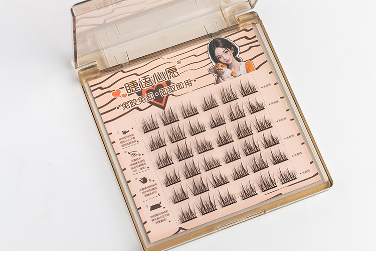 Specifications: JY-D2 [6 rows] glue-free double-pointed sunflower-vinyl, JY-D1 [6 rows] glue-free double-pointed sunflower-transparent tape, JY-D3 [6 rows] glue-free caramel Guppy, JY-D4 [6 rows] glueless kitten eyelashes, JY-D5 [6 rows] glueless line trilogy
