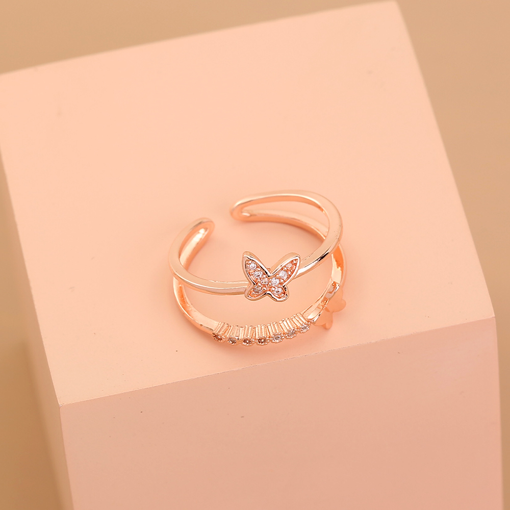 European and American Cross-border Trend Butterfly Three-dimensional Ring Niche Design Diamond Ring Fashion Open Ring Hipster Ring