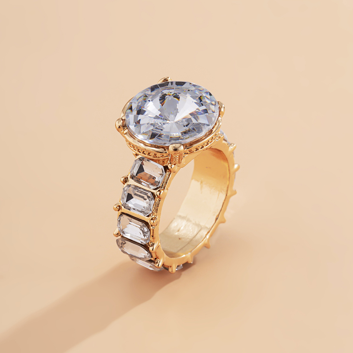 Product Details: Type: RingMaterial: AlloyModeling: GeometryTreatment process: electroplatingStyle: Women'sColor: gold and white diamonds, white k white diamondsSize: No. 12Packing list:Alloy Ring X1