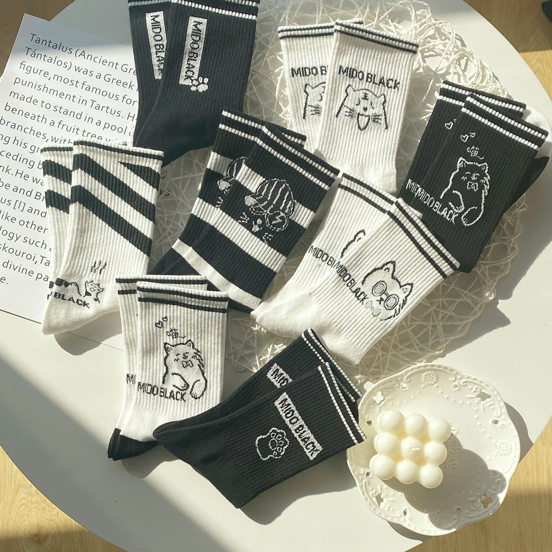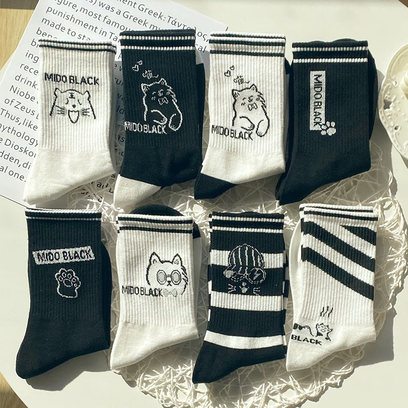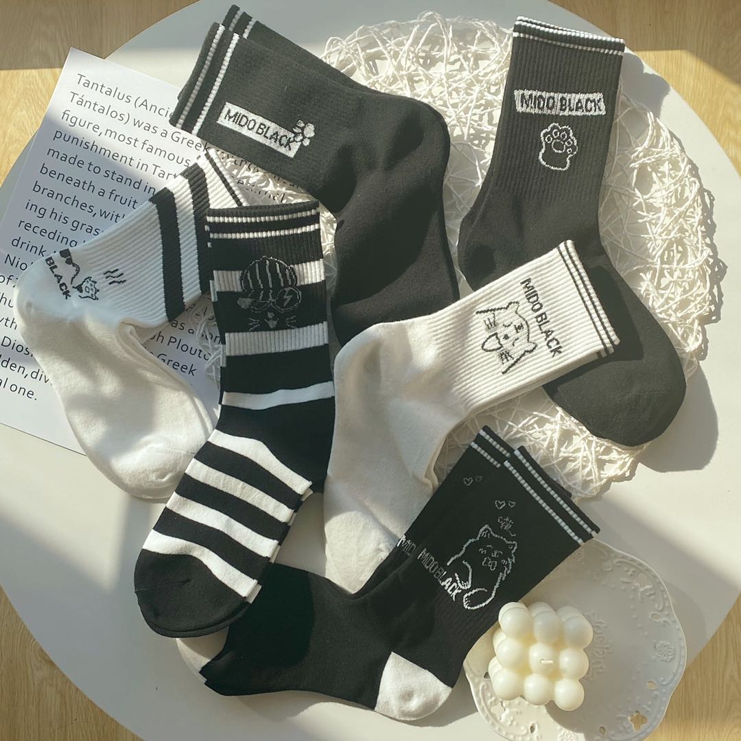 Hosiery in black and white socks female autumn winter INS tide lovely day tie cat claw cartoon sweet girl student stockings
