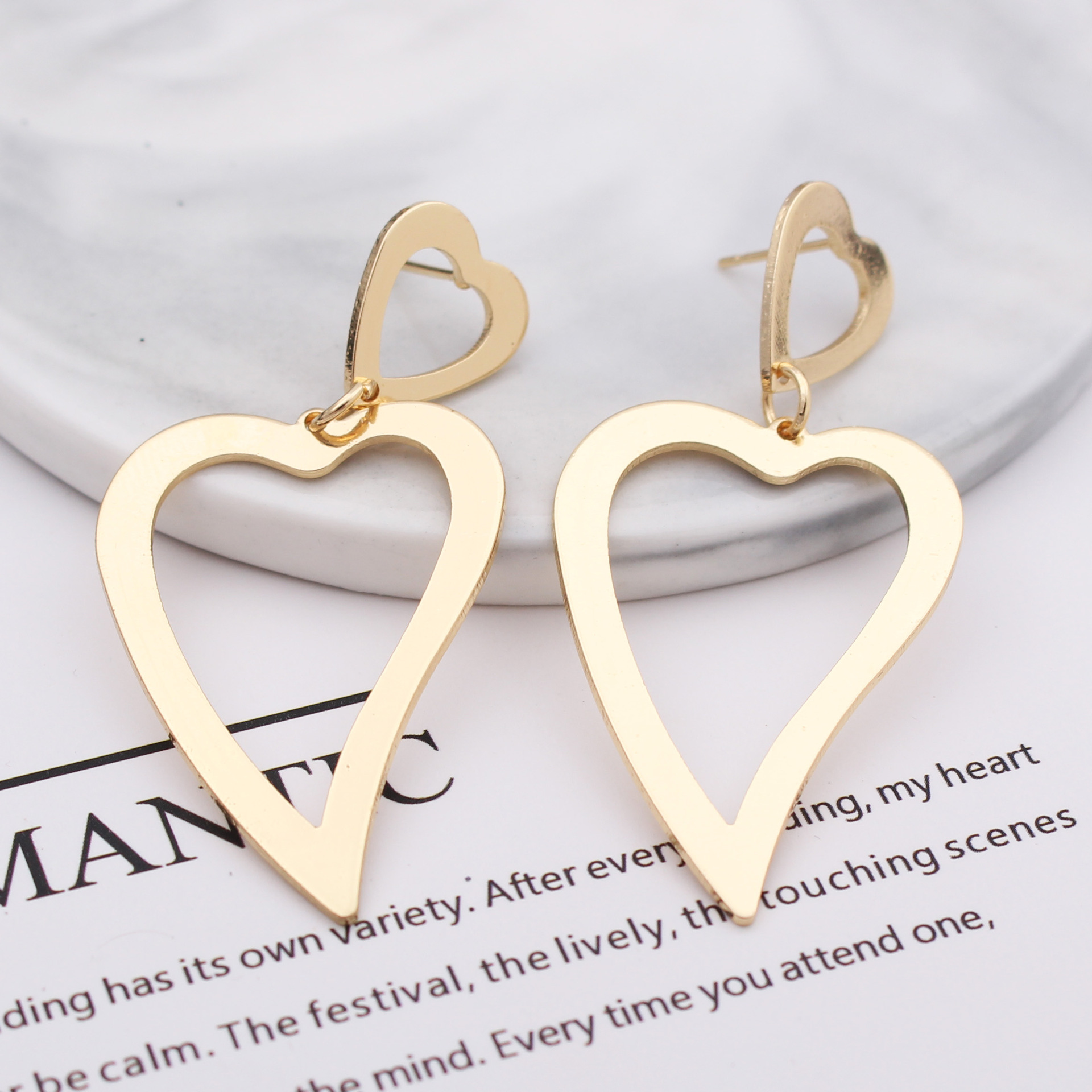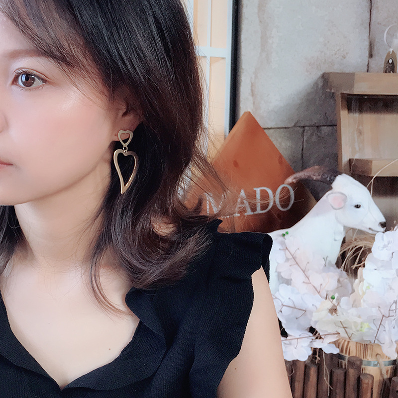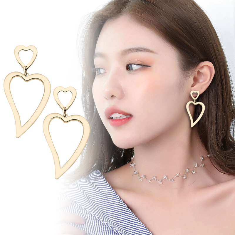 Peach heart earrings women fashion geometric hollow love