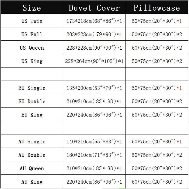 Sheet*1+Duvet cover*1Pillowcase*1