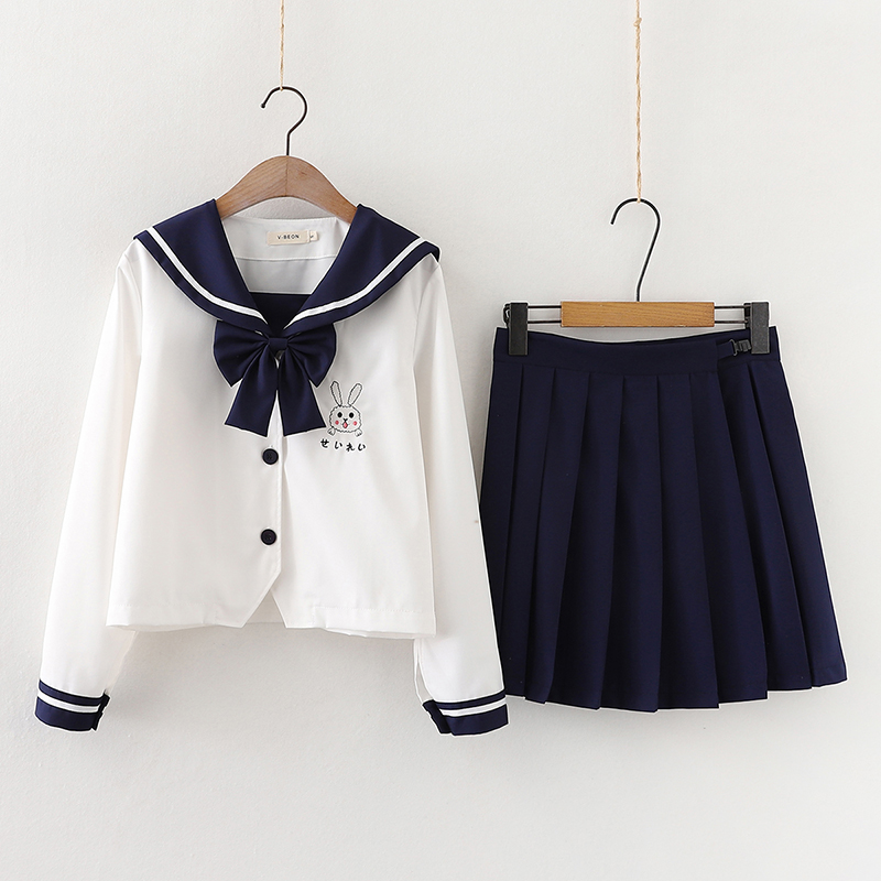 Color classification: white top + navy blue skirt, navy blue top + white skirt, white top, navy blue top