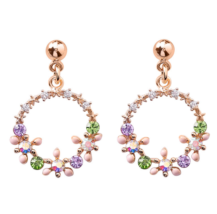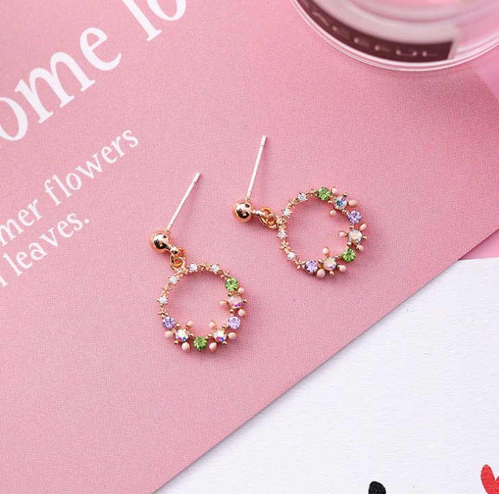 925 silver needle temperament color diamond wreath earrings girl heart circle flower zircon earrings earrings