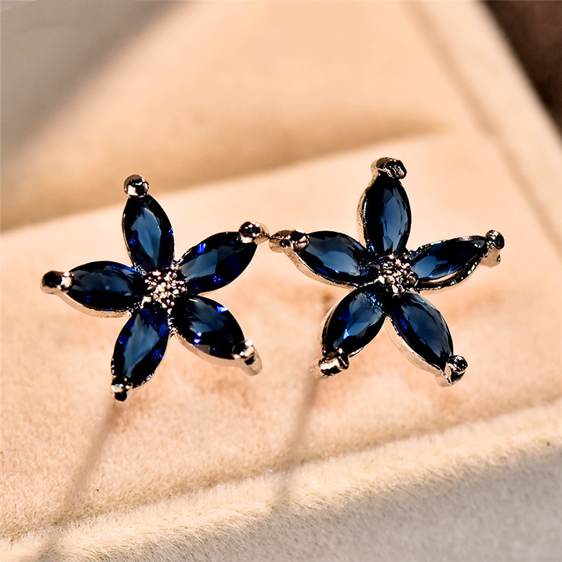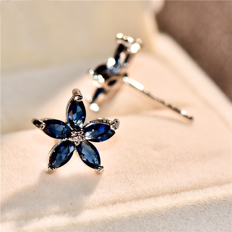 Stud Earrings Female Cute Zircon Earrings Korean Flower Petal Fashion Earrings