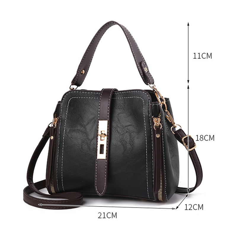 Fabric: PULining: polyesterStructure: main bag, inner patch bag, sandwich bag, zipper bagFunction: Shoulder / CrossbodySize: length 21CM, width 12CM, height 18CMStyle: Fashionable and simple