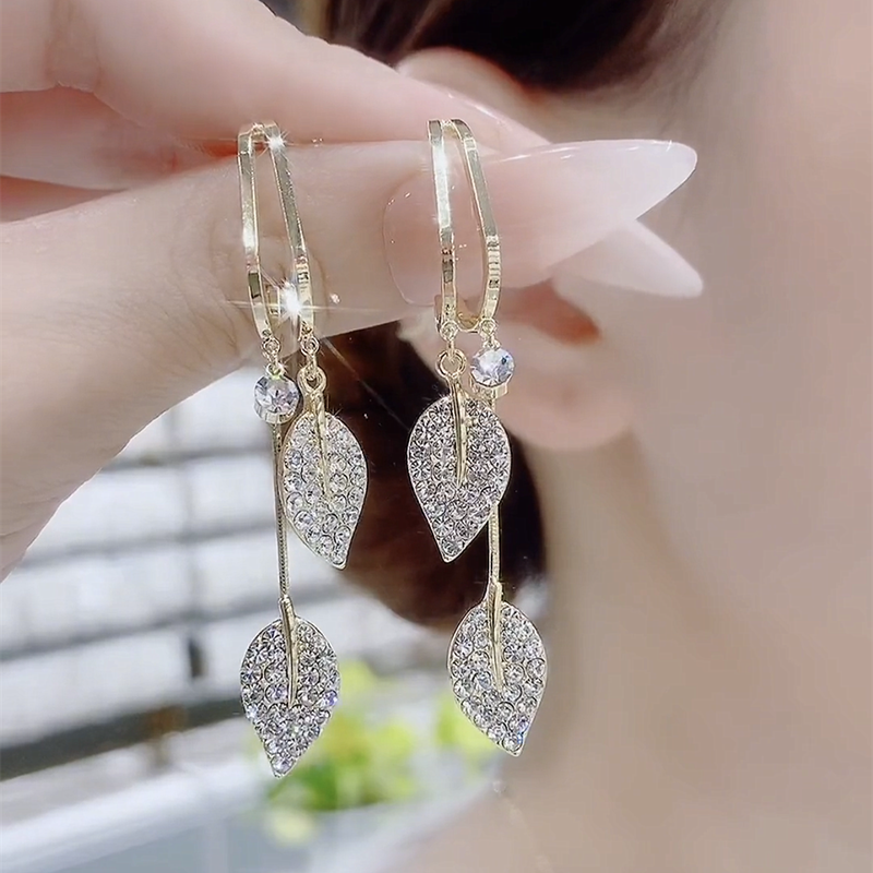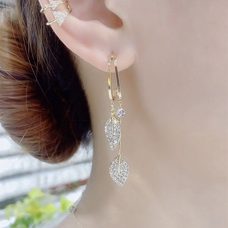 Women's Fashion Sterling Silver Golden Branches And Jade Leaves Earrings