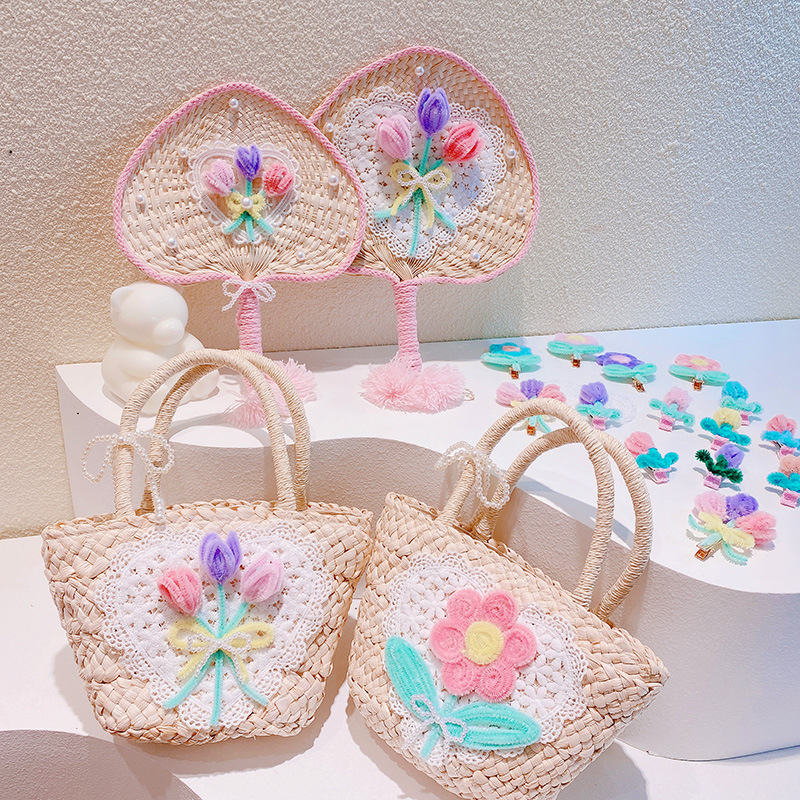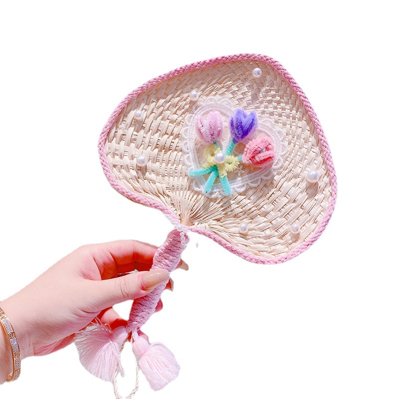 Color: 1.A07 little red flower lace love woven bag, 2.A07 Tulip lace love woven bag, 3.A2 Tulip love small size fan 16*22cm,4.A2 Tulip love medium size fan 28 * 32cm