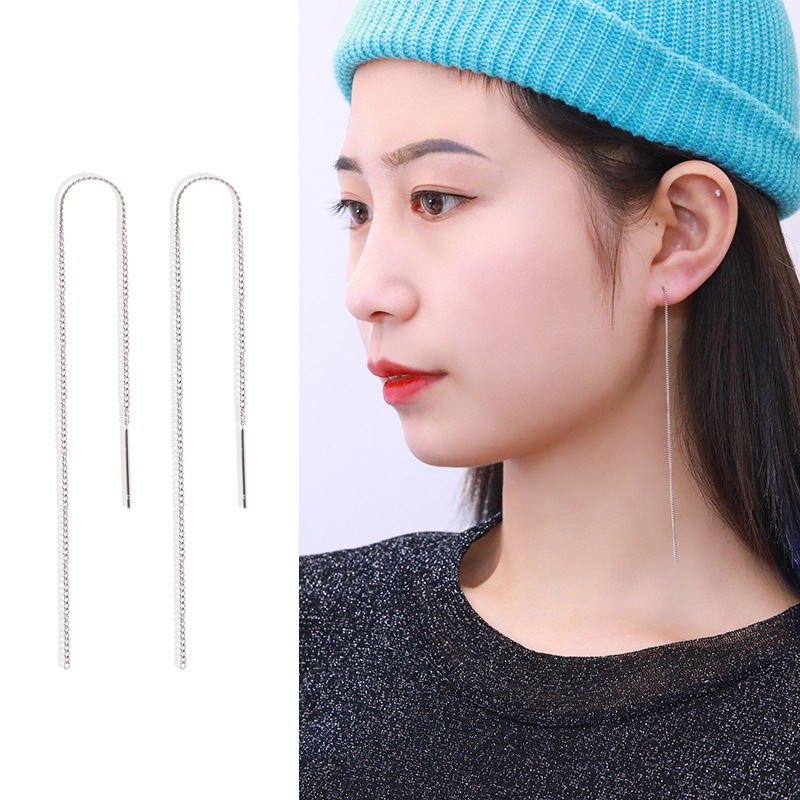 Product information :Material: stainless steelStyle: women'sModeling: linesMosaic material: Not MosaicColor: side chain ear /85mm, side chain ear /105mm, side chain ear /120mmPacking list:Earrings *2