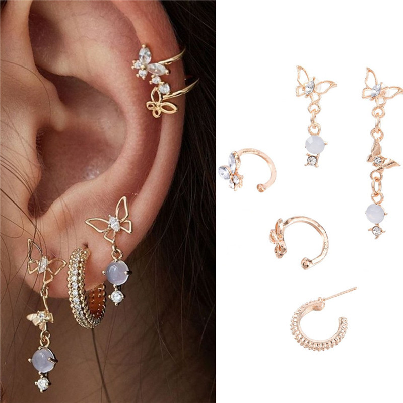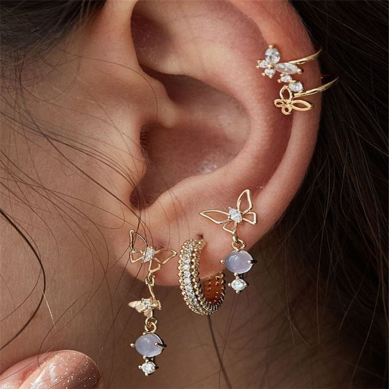 Material: AlloyStyle: Europe and AmericaStyle: Women'sShape: butterflyPopular elements: butterfliesProduct name: Butterfly ear clip long stud earringsMaterial: AlloyColor: golden