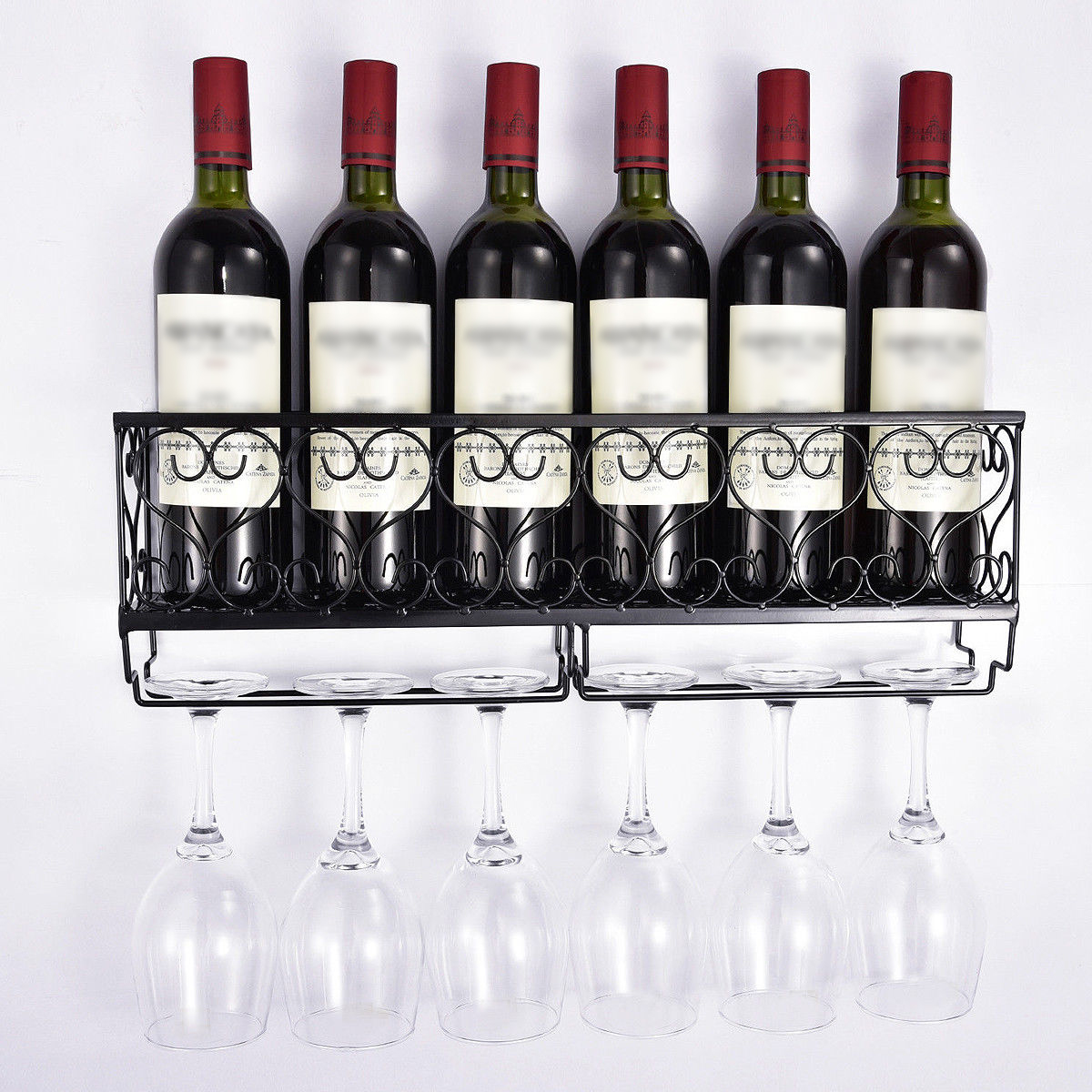 * White Black Wine Rack Wall Mounted Bottle Glass Holder Champagne Bar Accessory
