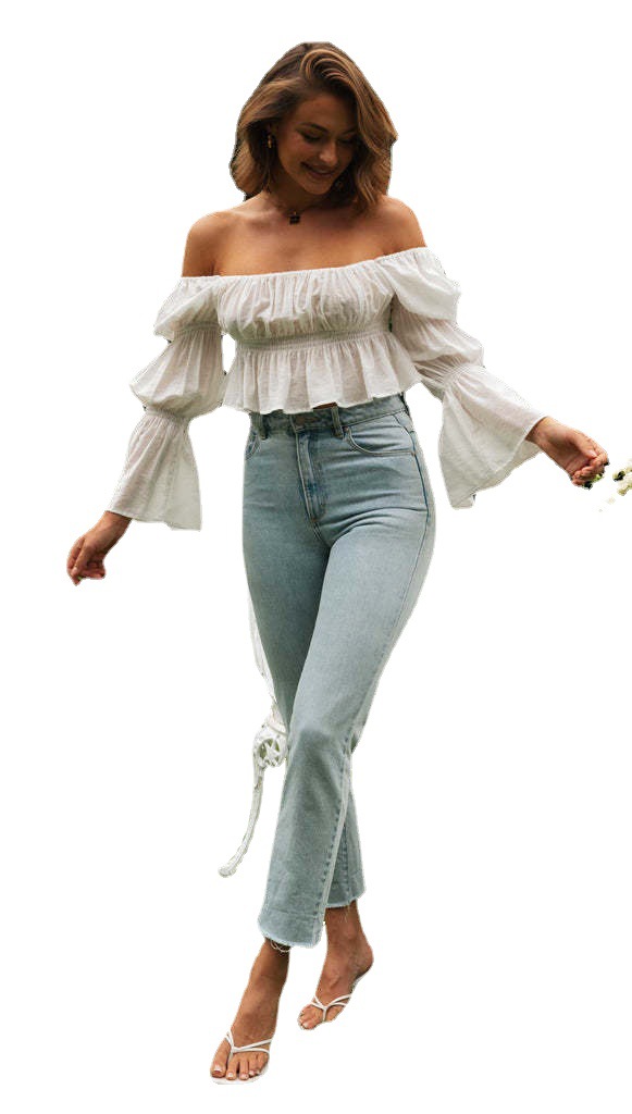 Product information:Fabric name: polyester fiberStyle: OL commuterPattern: plainStyle: HedgingSleeve Length: Long SleeveCollar type: one word collarSleeve Type: Petal SleeveColor: WhiteSize:S,M,L,XLPacking list:Polyester Ladies Dress x1