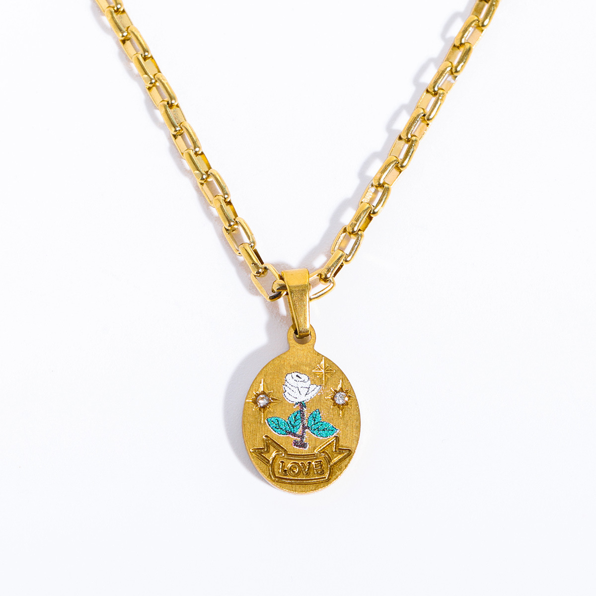 Color: peach pink-necklace, love heart-necklace, white rose-necklace, peace dove-necklace, pearl shell-necklace, butterfly-necklace, blue butterfly-necklace, Daisy-necklace, pea-necklace, myosotis sylvatica-necklace, spring Vine-necklace